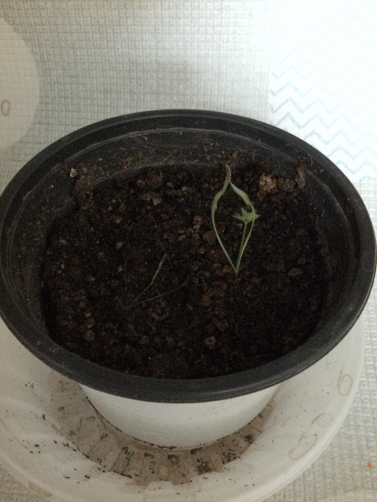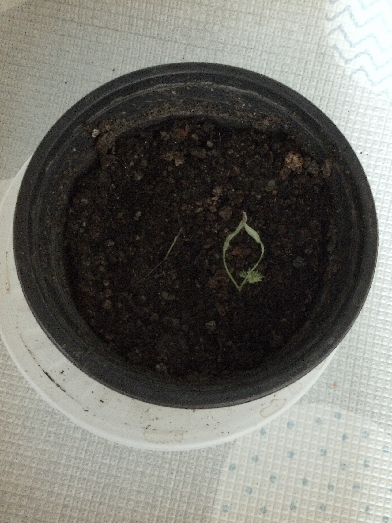 나의 애간장을 가장 많이 태우는 당근은 이제 딱 하나가 남았다. 처음에 발아율이 엄청 낮다는 얘기를 들어서 전혀 기대도 안 하고 있다가 갑자기 싹이 난처럼 한꺼번에 많이 나서 큰 기대를 주었던 녀석이, 하루하루 시간이 흐르면서 하나하나씩 픽픽 쓰러지는 것이 아닌가. 우리 친정엄마가 신경 써서 분갈이도 해줬는데 무엇이 문제일까. 볼 때마다 속이 상했다. 살아있는 싹 옆에 희미하게 보이는 마지막으로 쓰러진 저 싹을 보았을 때는 거의 체념 상태였다. 당근은 뿌리 식물인데 아무리 그전보다 큰 화분으로 분갈이를 했어도 어떻게 자랄 수가 있겠어, 라는 생각을 하고 있었는데 오늘! 응? 저건 뭐지? 유일하게 살아남은 녀석 옆에 뭐가 있다! 내가 찾아본 것이 맞다면 저것은 바로 당근 줄기! 어머나 진짜 당근 볼 수 있는 거야?