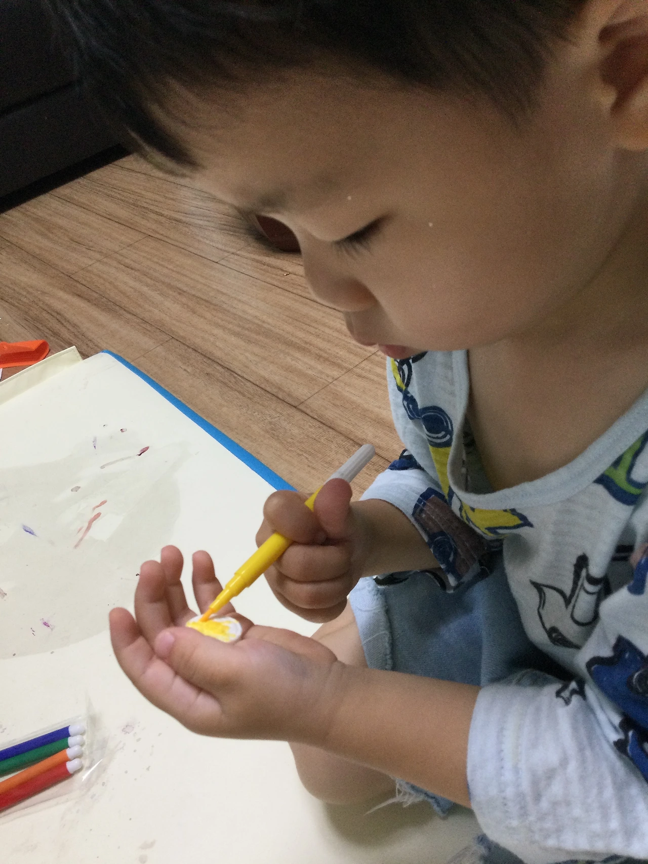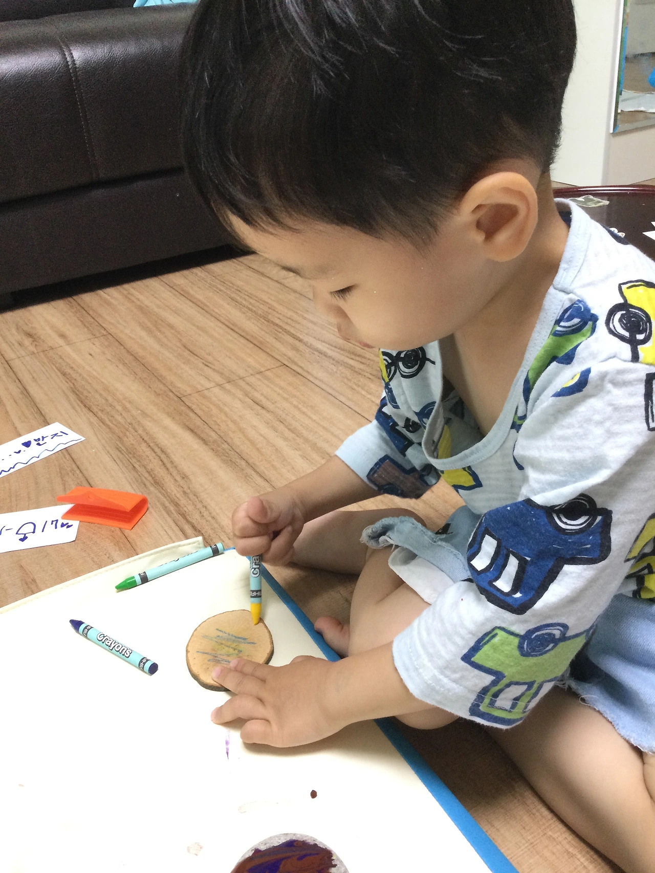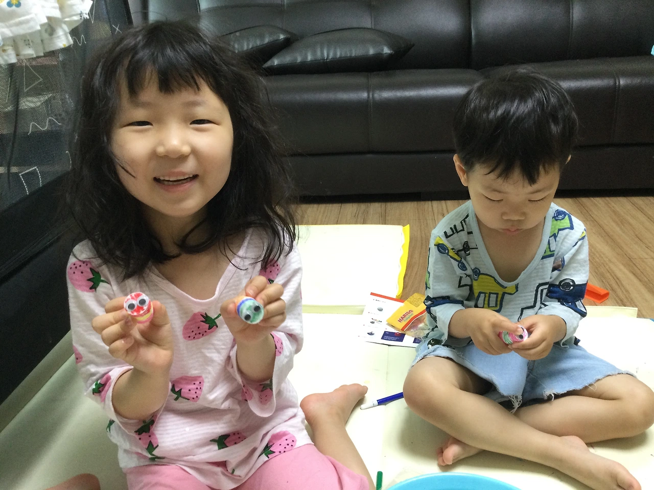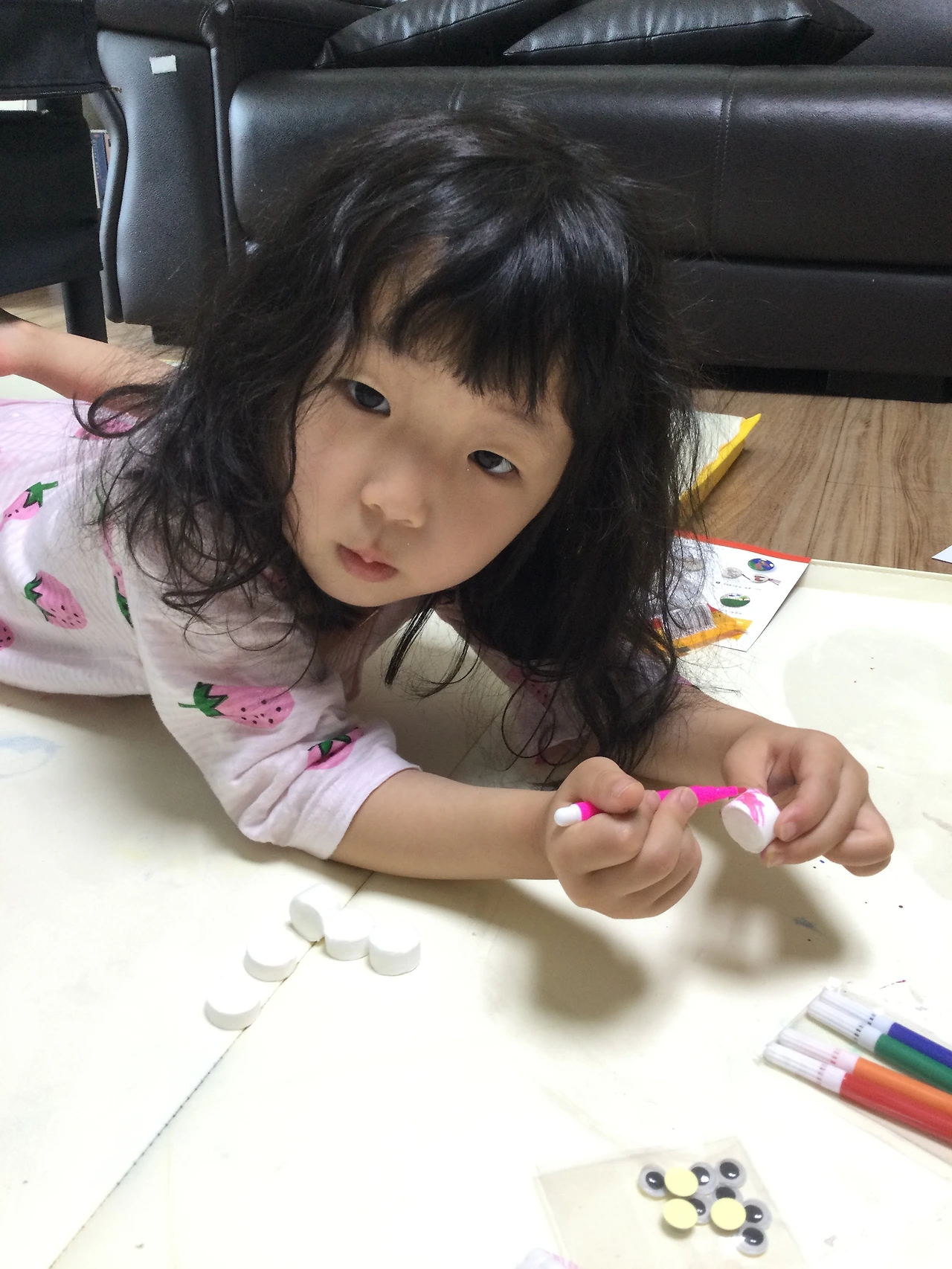 그런데 아쉬웠던 점은 분명 우리 둘째(4살) 이름으로 온 키트였지만 둘째가 흥미를 가질만한 것이 없었다는 것이다. 미술에 지대한 관심을 가진 남자아이들도 분명 있겠지만 우리 아들은 아니었다. 우리 아들은 변신로봇, 공룡, 블록, 킥보드와 같은 놀이들을 좋아하기에 처음 개봉한 돌멩이와 나무에 그림 그리는 키트는 완전히 취향저격 실패였다. 초반에는 누나를 따라서 집중하는 듯했으나 결국에는 붓으로 슥슥슥 칠하고 자리에서 일어났다. 반면 우리 딸은 평소 그림 그리는 것도 좋아하고, 꾸미는 것도 좋아해서 한동안 자리에서 밑그림도 그리고 색칠도 하며 키트를 한껏 즐겼다.