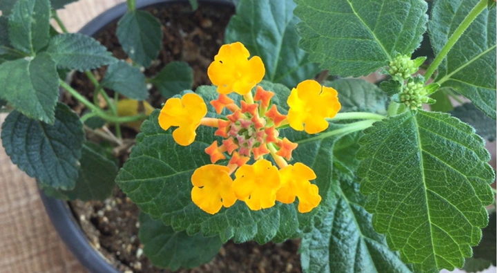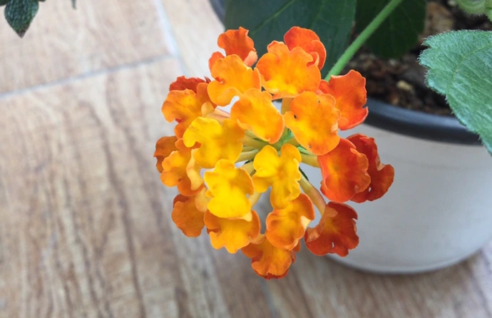 이 글을 작성하고 다음날, 꽃이 만개한 것을 발견했다. 노랑과 주황과 빨강이 참 아름다운 란타나. 두번째도 잘 피어줘서 고맙다.