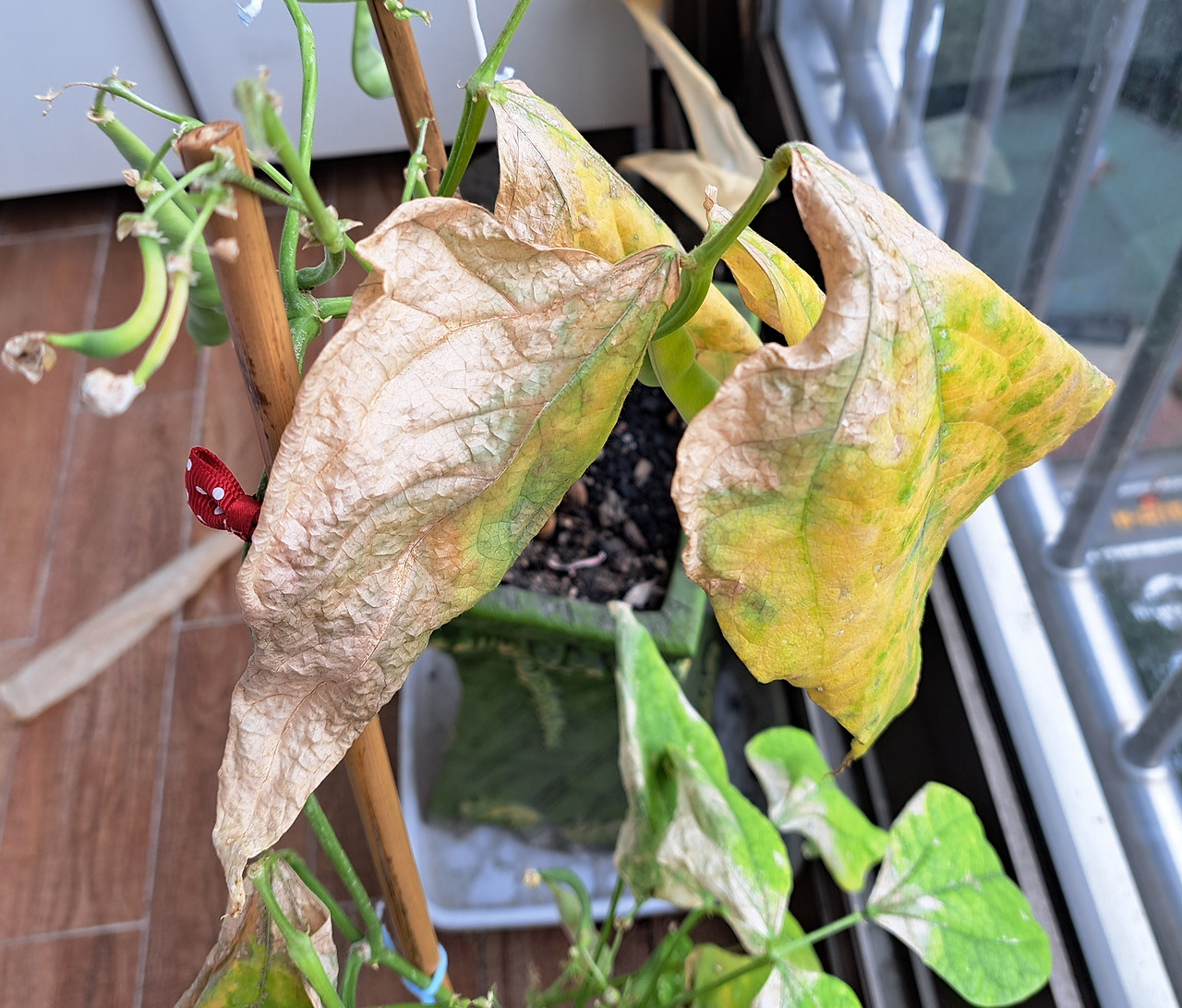 급격히 생명을 잃어가면서도 강낭콩은 마지막 힘을 쥐어짜 내고 있었다. 그 노력으로 열매는 나날이 탐스러워지고 있다.