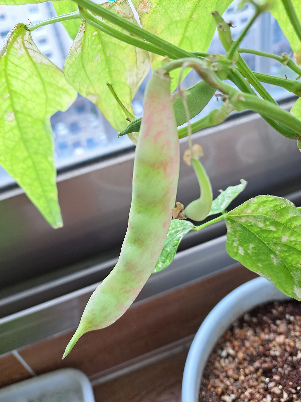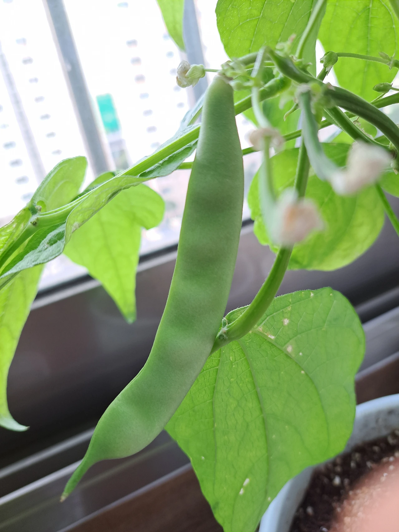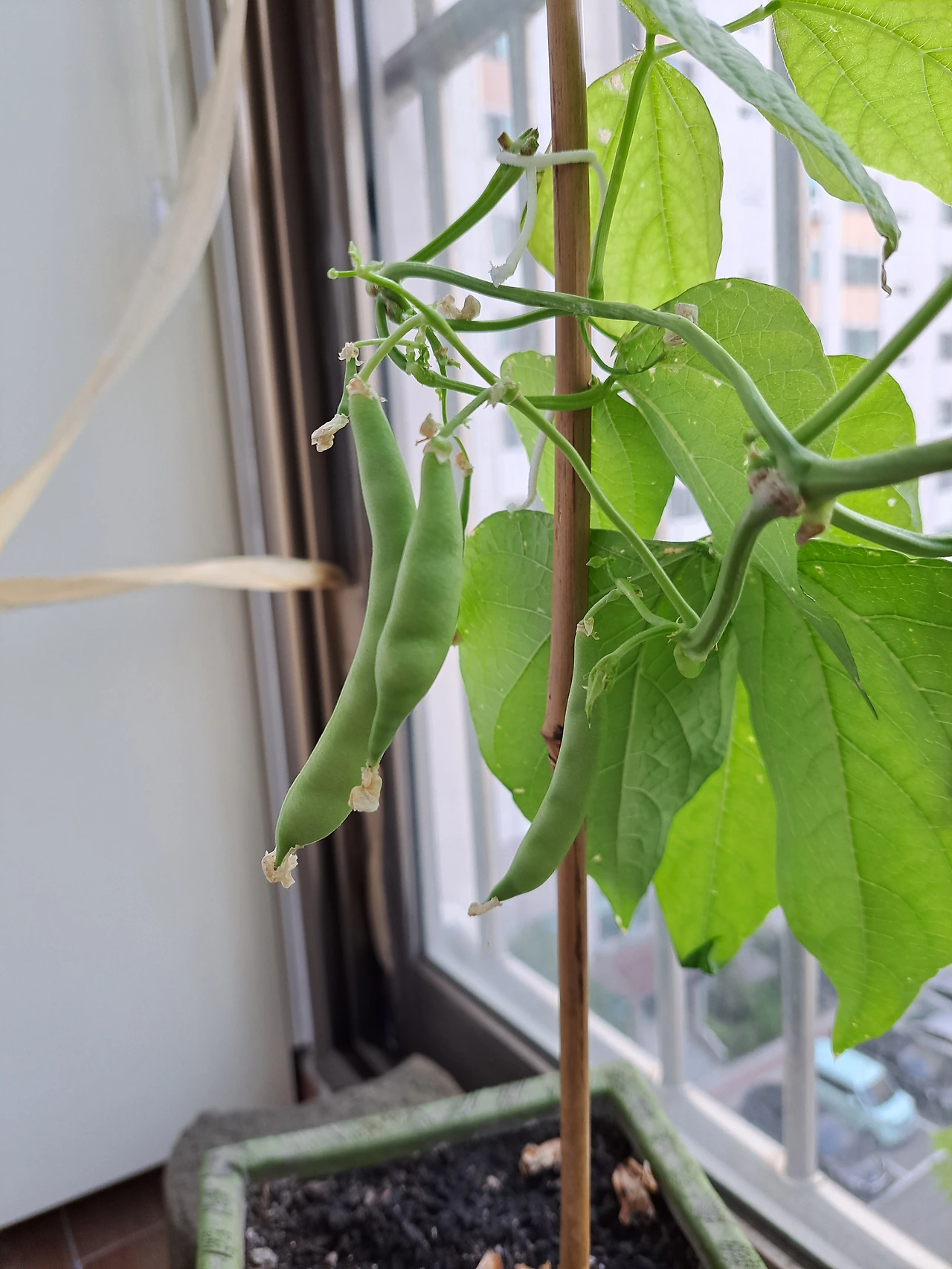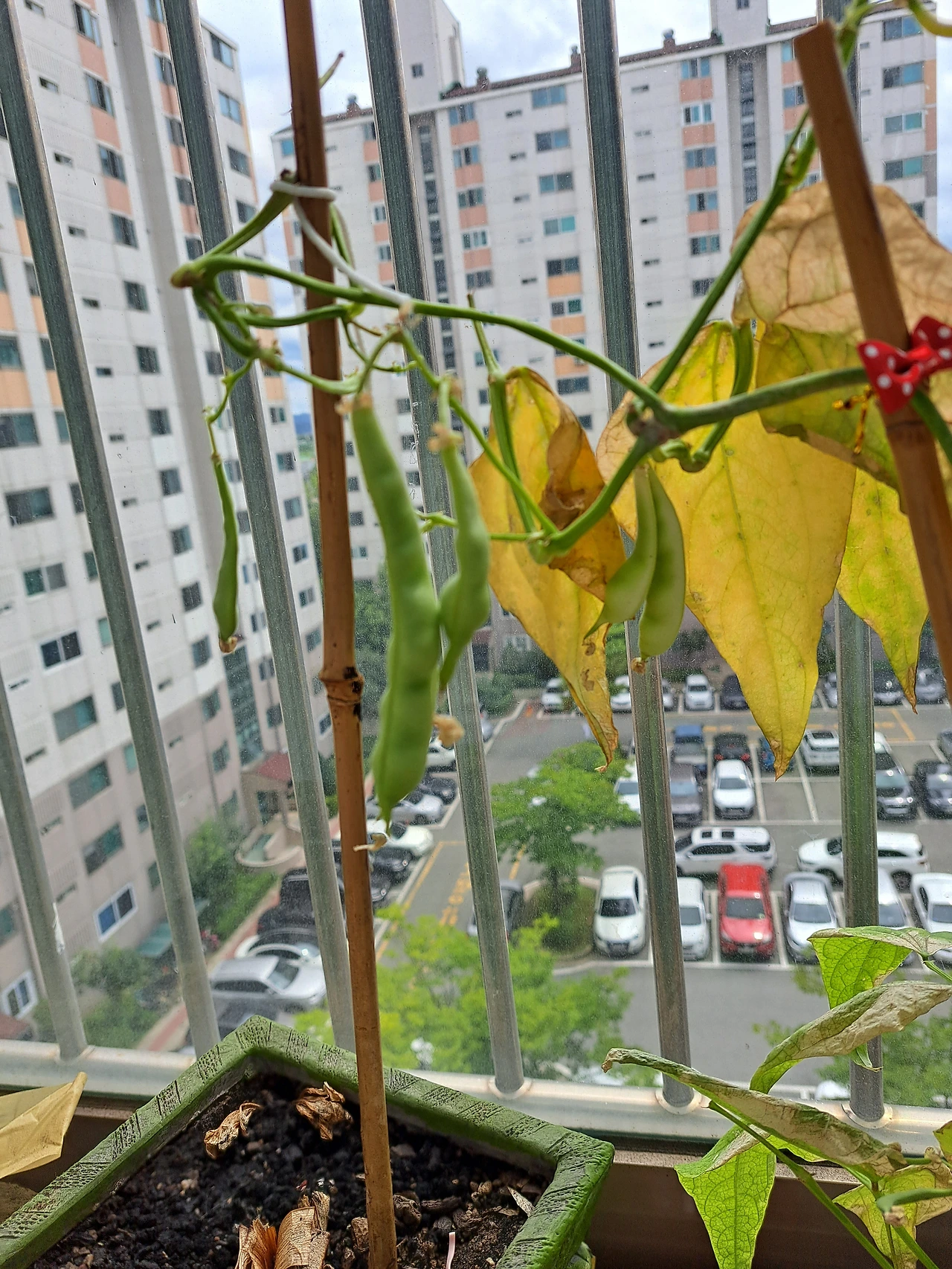 너무도 기쁘고 설레었다. 드디어 수확물을 보는구나. 또한 이 열악한 베란다라는 환경에서 식물이라고는 한 번도 키워본 적이 없는 사람을 만났음에도 자신의 역할을 끝까지 해내고 있는 듯한 강낭콩에게 고마운 마음도 들었다. 친정엄마가 오신 날, 자랑스럽게 강낭콩이 열린 것을 보여드리니 베란다에 나가실 때까지 의심쩍어하시더니 진짜 보시고는 눈이 동그래지셨다.