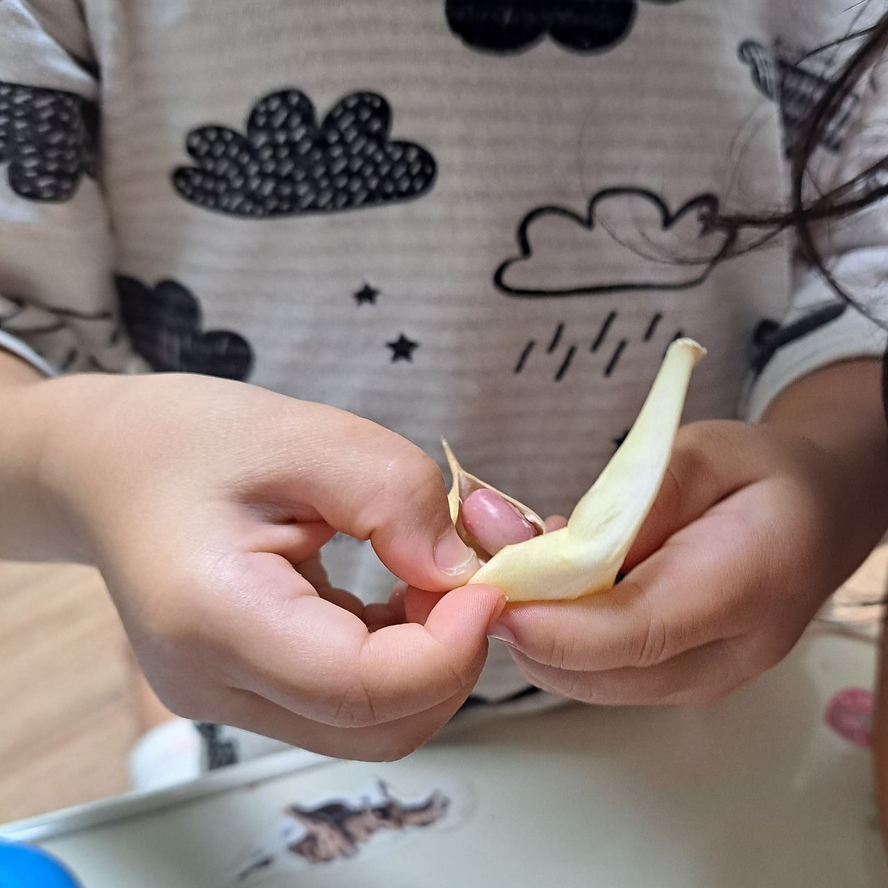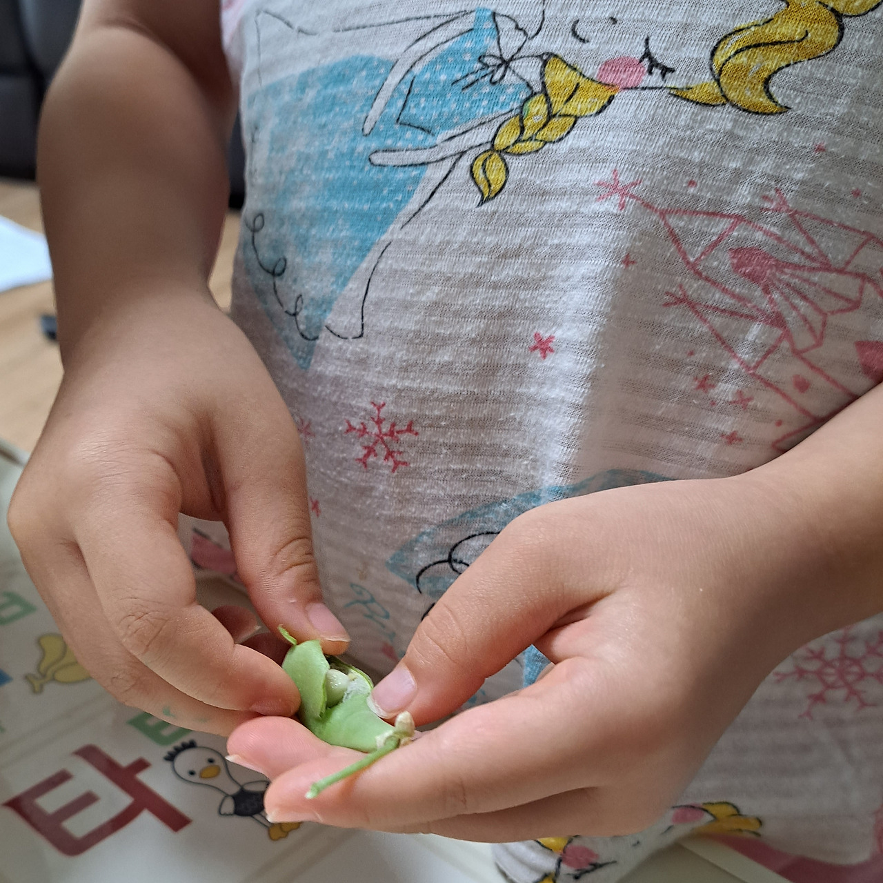 아이들은 고사리 같은 손으로 생각보다 질긴 꼬투리 껍질을 열심히 깠다.