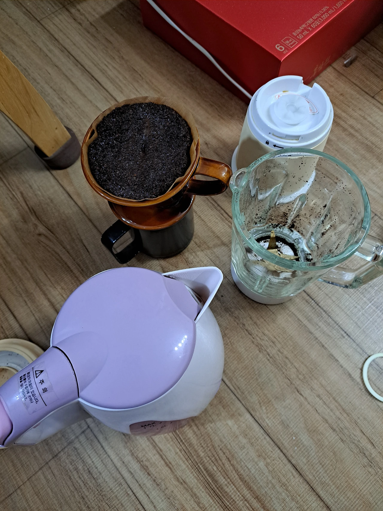 커피 내려지는 소리가 정말 듣기 좋았다. 아마 믹서기와 커피 포트라는 아주 열악한 상황에서 얻은 결과물이기에 더 그렇지 않았을까.