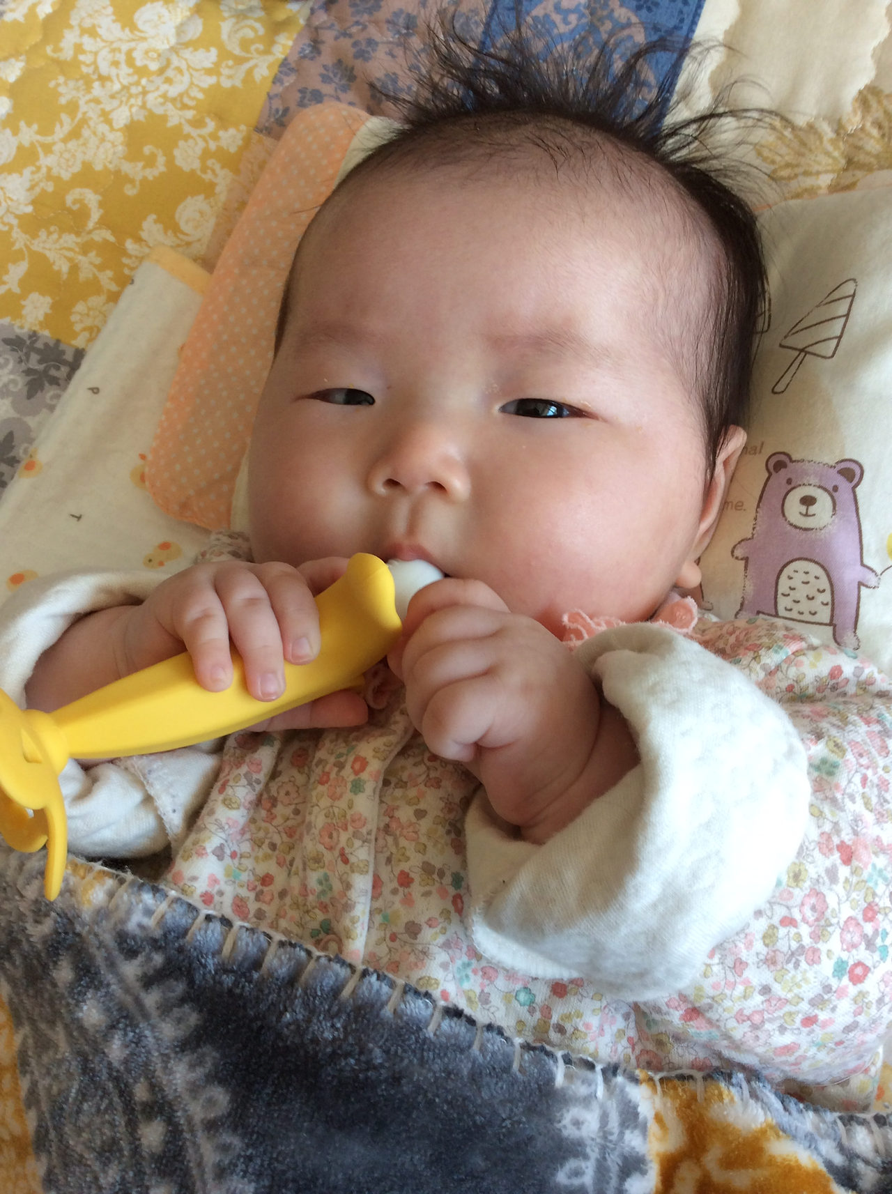 그래서 엄마 아빠가 결정을 해야하는데 .. 아예 못빨게 할 수는 없으니까 일단 치발기를 쥐어줘 보기로