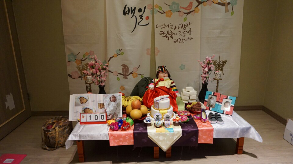 백일상은 식구들 날짜 맞추다보니 3일 앞당겨서 했어. 97일에.