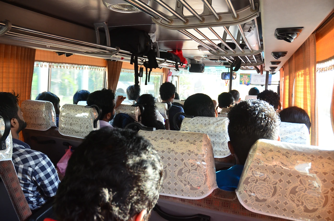 2,500원짜리 에어컨 버스는 기대 이상으로 훌륭했다. 창문도 잘 닫혔고 바람은 추울 정도로 강했으며 무엇보다도 새 버스였다. 해리와 나는 버스에 올라 등받이에 몸을 깊이 묻으며 스리랑카의 교통비를 무럭 칭찬했다.