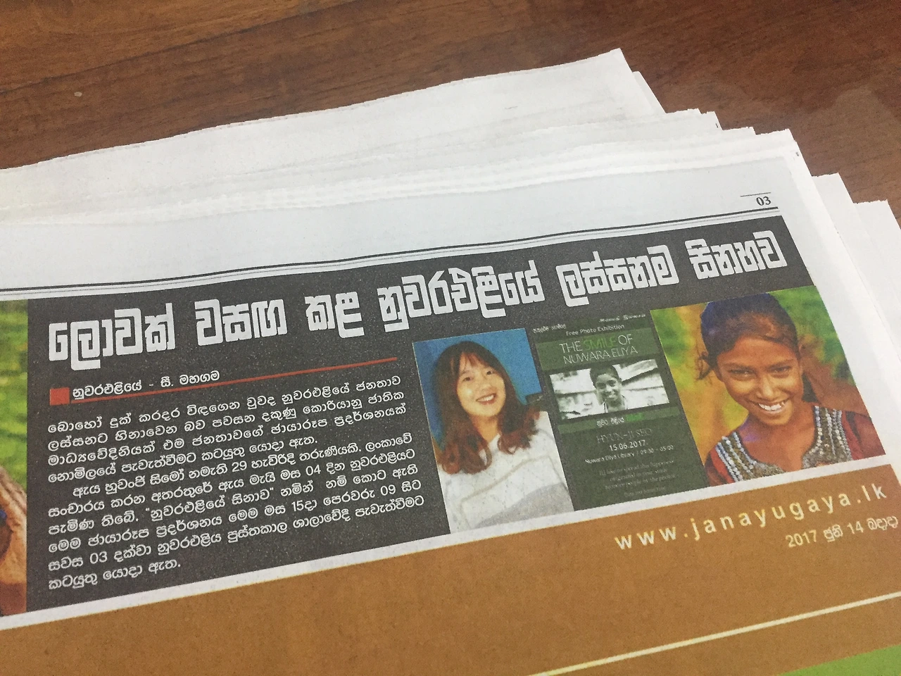 전시회 주제는 30초만 고민해보고 바로 결정했다. The smile of Nuwara Eliya. 누와라엘리야의 미소다. 스리랑카 사람들은 예쁘게 웃었다. 그러면서도 자주 웃었다. 랑칸들은 부끄러울 때도 좋을 때도 어색하거나 반갑거나 할 말이 있을 때나 없을 때도 웃었다. 랑칸들은 주로 이빨을 드러내며 씩 웃거나 입꼬리를 한껏 올리는 방식으로 웃었는데 그럴 때마다 세계 간의 경계는 힘없이 무너졌다. 그들의 웃음에는 여러 가지 종류와 의미가 있겠지만 어느 것이든 무해했다는 사실을 나는 기억한다. 누와라엘리야 사람들이 보물처럼 품고 있는 웃음의 모양들을 떠올린다.