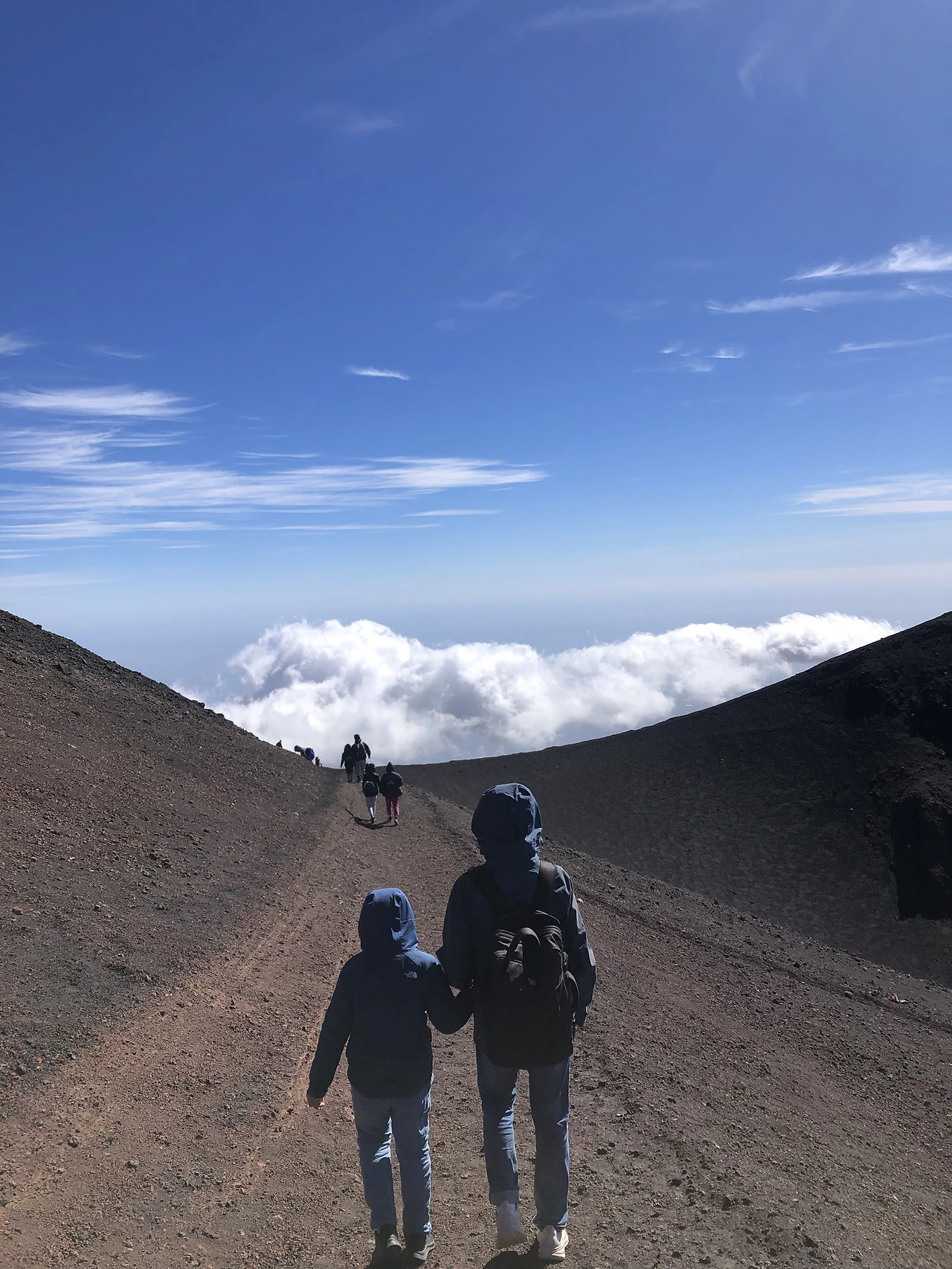 시칠리아 카타니아의 활화산, 에트나에 올랐던 날에도 어김없이 우리 집에는 불화의 신이 찾아왔다. 에트나에 온 김에 정상까지는 아니더라도 등반해보고 싶었다. 케이블카를 타고 한참 올라간 뒤, 다시 4륜 구동 버스로 갈아타고 10분간 더 높이 올랐다. 그리고는 차에서 내려 직접 걸어 올라가야 했다. 발이 흙 속에 푹푹 빠져 한 걸음 떼는 것도 힘들었다. 내복부터 두꺼운 옷에 바람막이 잠바까지 겹겹이 껴입었는데도 고도가 높아서인지 공기가 차가워 가만히 서 있으면 몸이 떨렸다. 바람은 몸을 날려버릴 듯 몰아쳤다. 예상보다 훨씬 가혹한 조건에 난감했다. 십여 개를 훑었던 SNS 후기에서는 보지 못했던 순간들이었다.