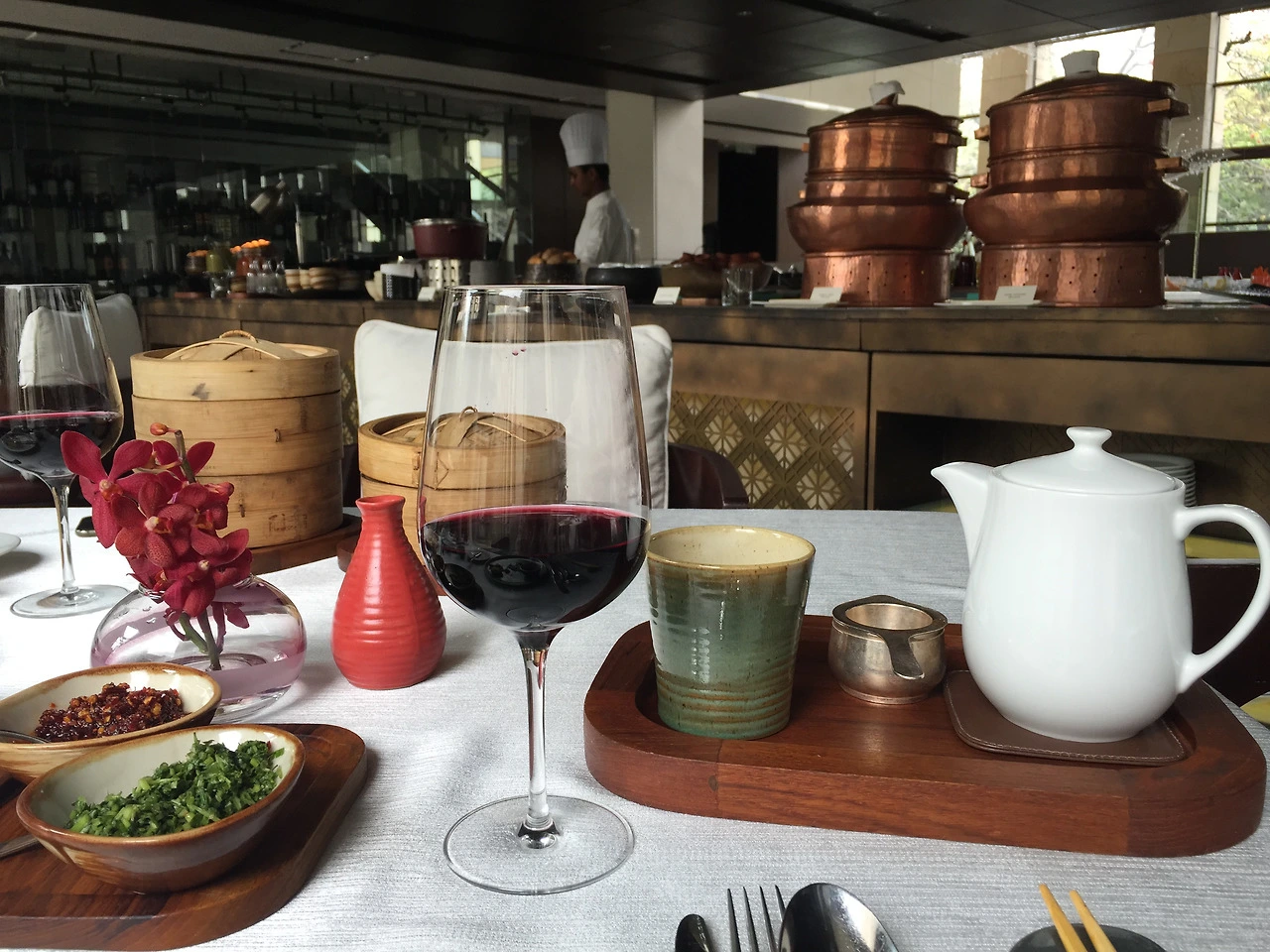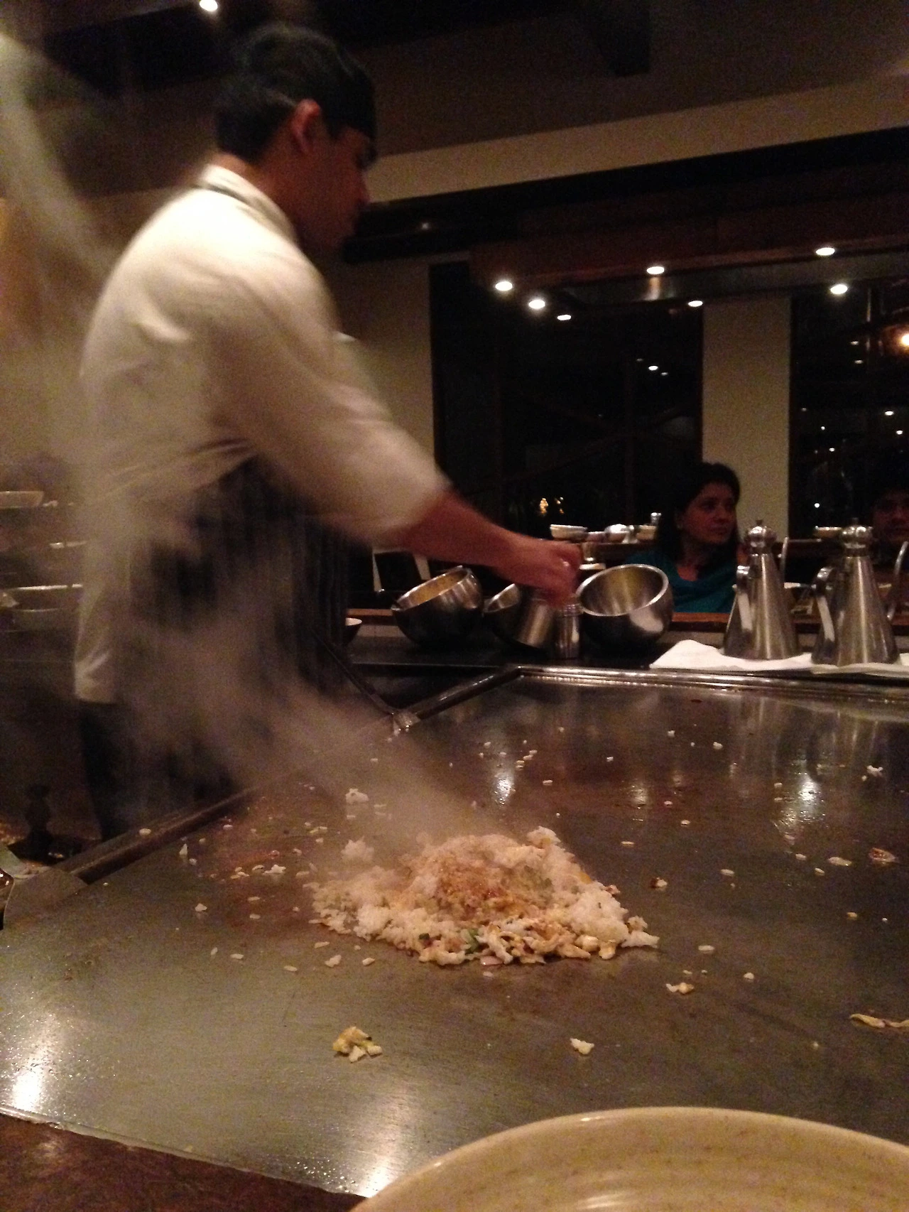 "마침 하야트 이야기가 나와서 생각났는데, 거기 데판야끼 요릿집이 있잖아? 마침 주말이니 와인은 무제한으로 제공한다고.."