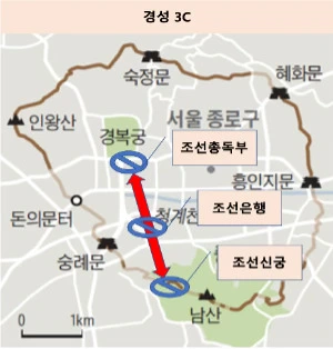 "조선이라고 하기보다는 일본이 만든 경성부, 그러니까 지금의 서울에 그것도 덕수궁과 아주 지척에 만들어 놓았지. 대한제국의 건국이 1897년이잖아? 일본이 불법으로 한일합병을 한 1910년에 조선총독부를 만들고 청사는 남산에 있었는데, 1926년에 청사를 경복궁 경내에 지금은 철거했지만 총독부 건물을 만들어서 이전을 한 거야. 그리고 1910년에는 아마도 가장 당면했던 일이었을 것인데, 조선은행을 설립했지, 그 건물은 지금 신세계 백화점 건너편에 화폐박물관으로 운영 중이지. 그리고 마지막으로 1920년부터 1925에 신궁(神宮)으로 격상하여 완공한 조선신궁은 남산에 있었어. 남산의 소월길을 따라 올라가면 남산 도서관이 있는데 그 근처에 있었다고 해. 그 신궁으로 가는 길이 일본인들이 만든 소월길인데, 꽃피는 봄에 가면 구불구불한 길이 아주 낭만적이고 아름답다는 생각밖에는 안 들 거야."