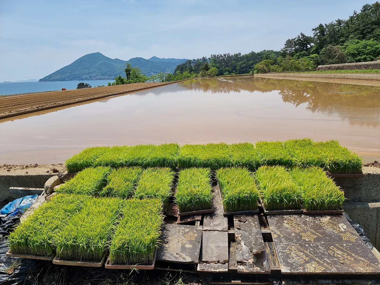 그 위로는 모내기도 한창인데 계단식 다랭이논들이다.