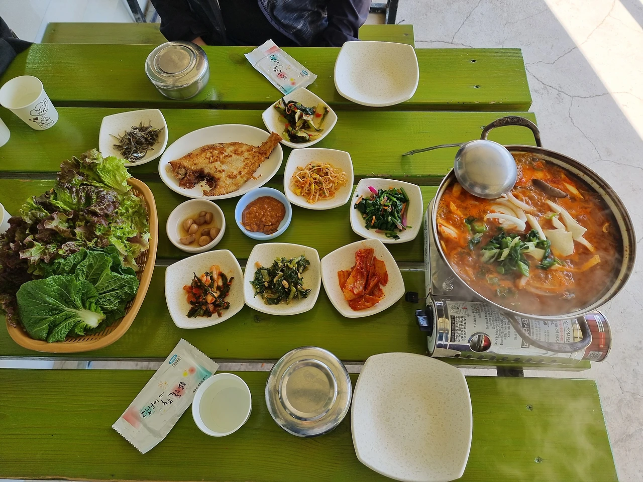사천에서 남해로 건너와서는 (걸어서) 문을 막 닫으려는 식당으로 들어가 배말 칼국수와 배말 톳 김밥을 주문했다.