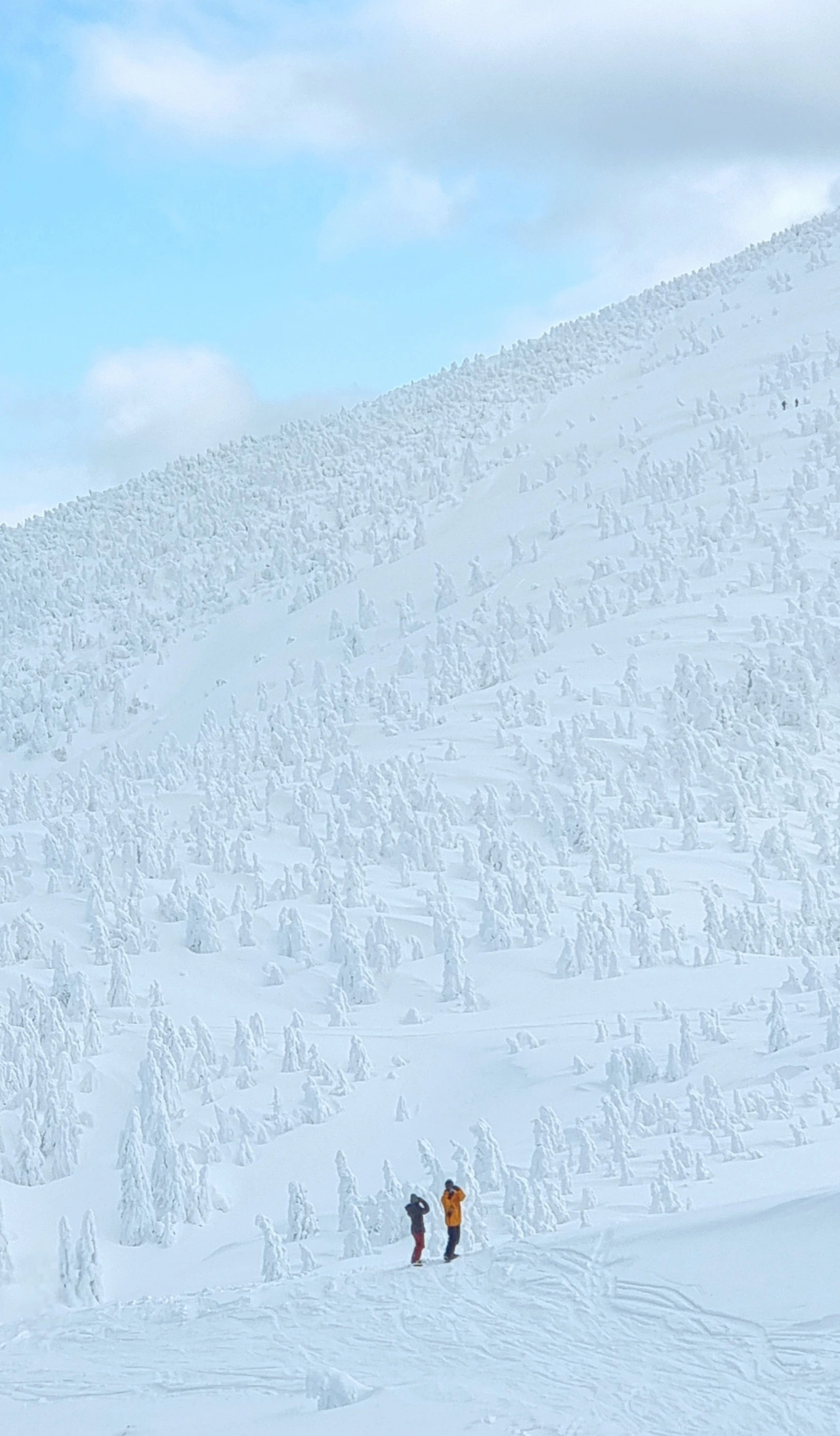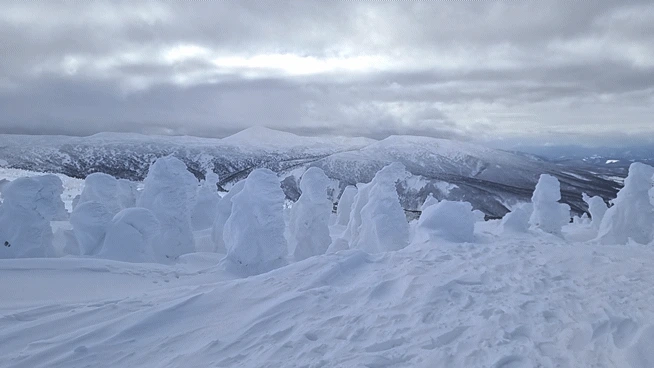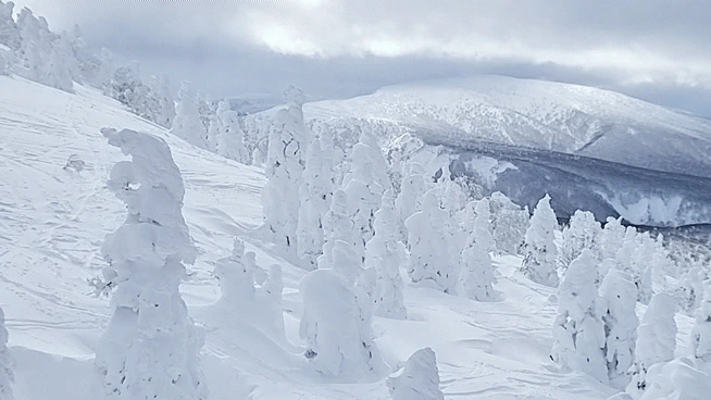 그러나 조금 더 추워지고 높은 곳으로 가면 구름, 눈입자들이 나뭇가지등에 부딪혀서 얼어붙어 그위에 눈이 쌓이면 나무들은 기괴한 모습으로 변신하는데