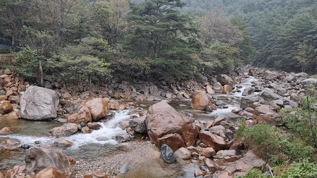 물소리를 들으며 한 시간 정도 여유 있게 걸으면 대원사에 도착한다.