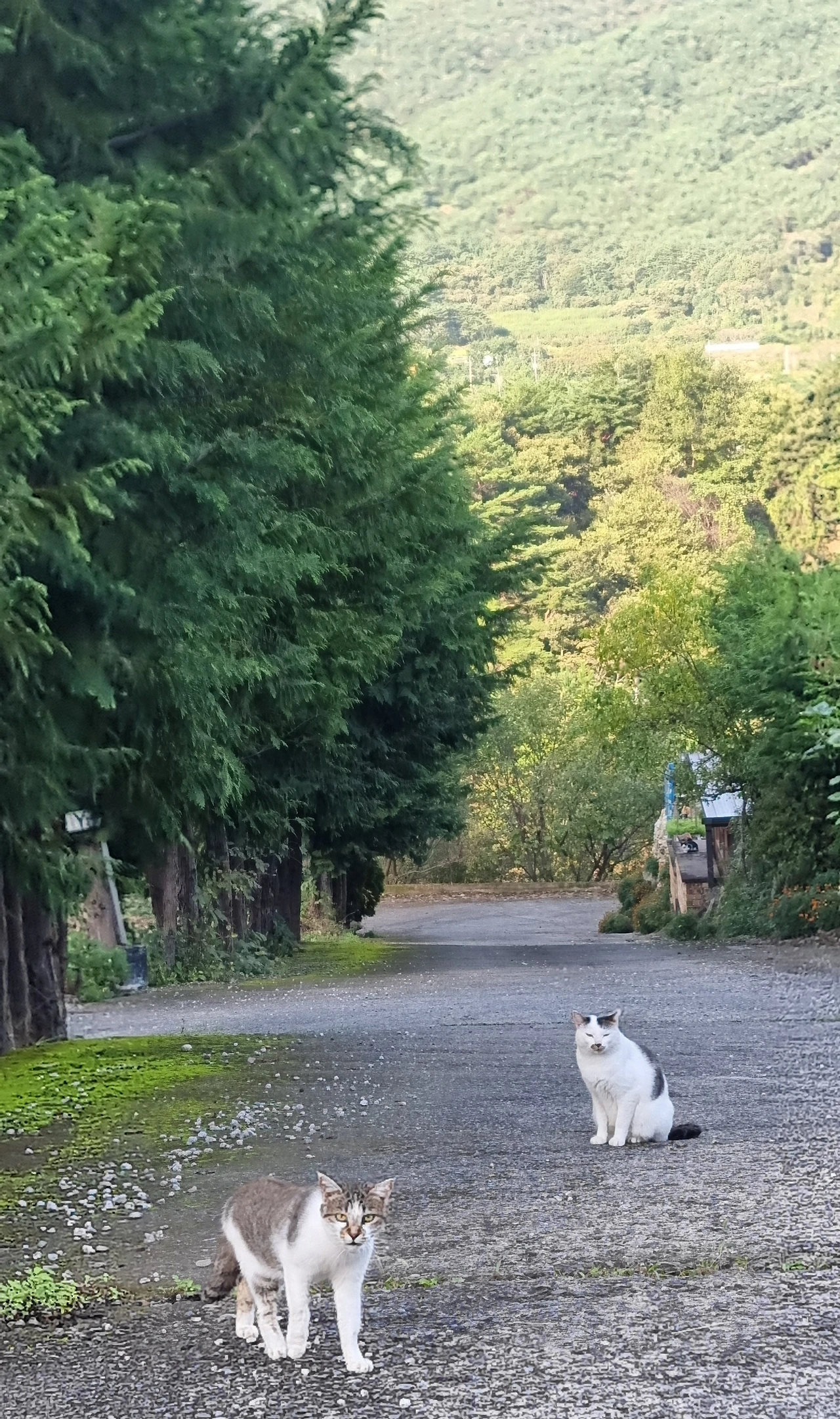 이틀밤을 묵은 펜션에서 아침 일찍 열쇠를 반납하고 길을 나섰다. 길냥이들이 길을 막고 먹을 것을 요구하는데 줄 것이 전혀 없다!