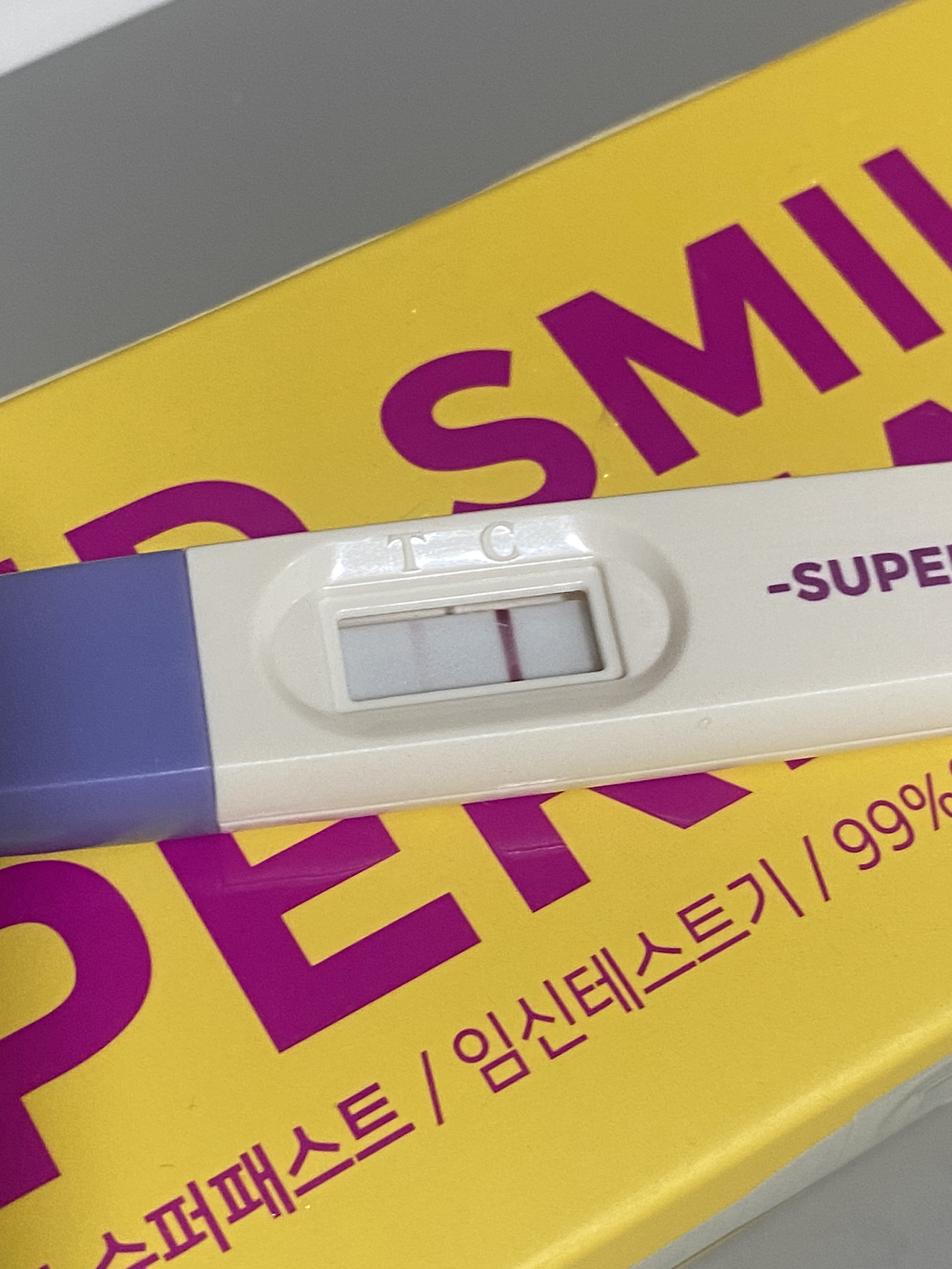 아침 출근 전, 어제 남편의 말이 생각나 갑자기 테스트를 해볼까 다섯 번은 고민한 것 같다. 왜냐하면 내일부터 추석연휴이고 은근히 좋은 소식을 기다리고 계시는 양가에 팩트를 가지고 가면 좋겠다고 나누었던 대화 때문이다. 얼마 전 배란테스트기를 대량 구입하면서 함께 구입한 몇 개의 임신테스트기를 두고 고민했다. 어플상 생리예정일은 1~3일 정도 남았기 때문에 임신이 맞다면 지금쯤 희미한 두줄을 볼 수 있는 시기는 되는 것 같았다. 그럼 이번에는 임신이 아닌 걸 확인하기 위해 테스트를 해보자며 임신테스트기는 다음 달에 또 사면 되지 뭐, 이러면서 소변검사를 했다. 내가 사용한 테스트기는 맘카페에서 두줄이 나오기가 어려워 이 테스트기에서 희미하게라도 두줄이 나오면 빼박 임신이라는 ‘단호박 임테기’, ‘야박한 임테기’라고 소문이 난 제품이다. 게다가 결과선이 빠르게 나온다는 슈퍼패스트 제품이었는데, 결과선이 나타날때까지 기다리는 마음이 답답하지 않아 확실히 빠르긴 빠른 것 같다고 생각했다. 다음에는 이 빠르고 단호한 임신테스트기를 대량 구입하는 게 좋겠다고 생각했다. 양치를 하며 역시나 한 줄이네 하는 순간, 왼쪽에 희미하게 한 줄이 더 보이는 것 같았다!
