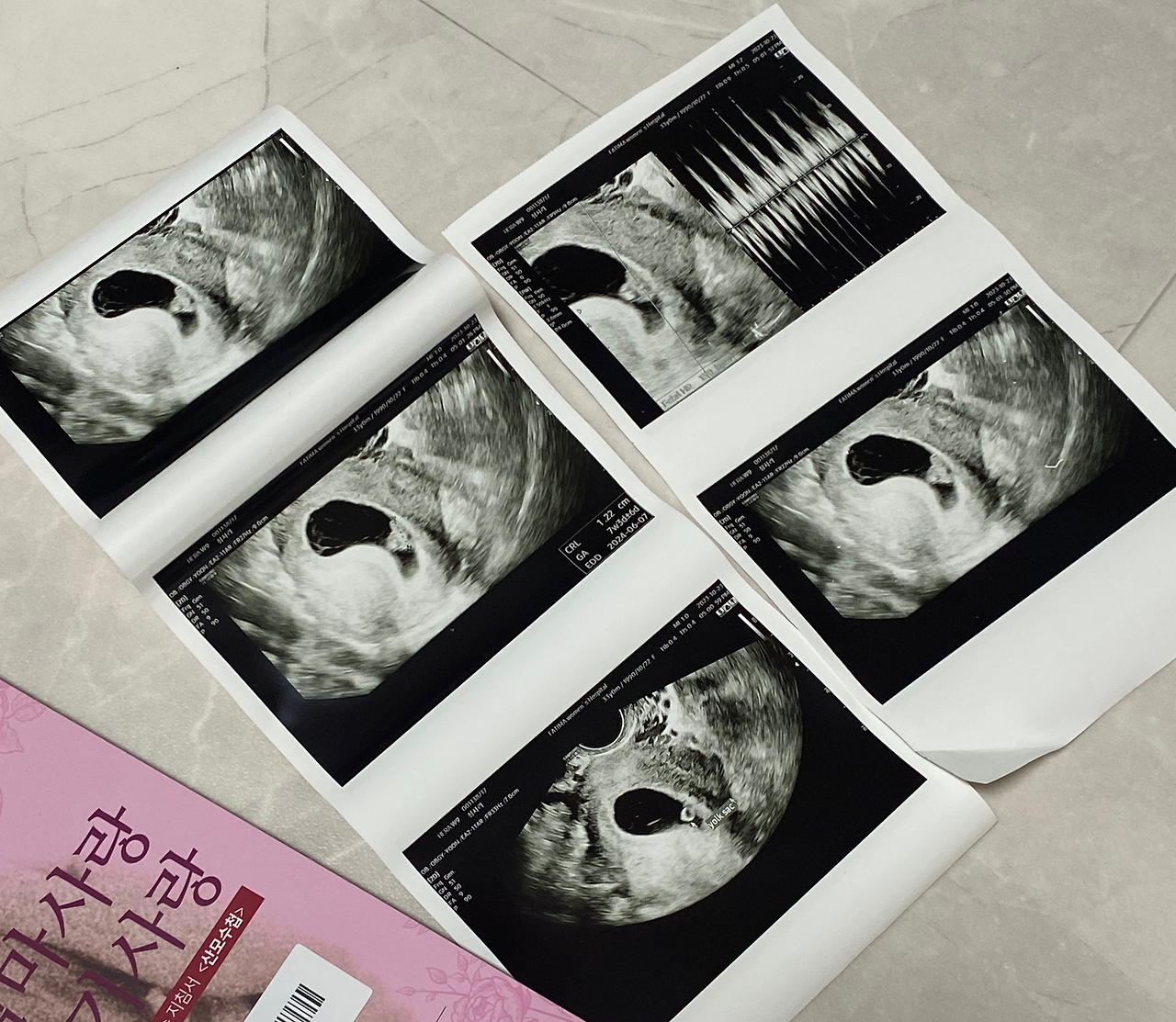 설명을 듣지 않으면 알아보기 어려운 형태의 태아에게 두근두근 뛰는 작은 심장이 보였고, 웅장한 북소리와 같은 심장소리도 함께 들렸다. 보통 첫 심장소리를 들으면 감격의 눈물을 흘린다는데, 남편이 없이 혼자여서 그런 건지 나는 어떤 반응을 해야 할지 몰랐다. 애매하게 감동적인 것 같으면서 '우와..' 밖에 할 말이 없고, 내 뱃속에 이런 생명체가 존재한다는 게 믿기지 않으면서 이상한 기분이 들었다. 그저 주수에 맞게 잘 크고 있고 다른 이상이 없다는 사실에 안도감이 더 들었을 뿐.