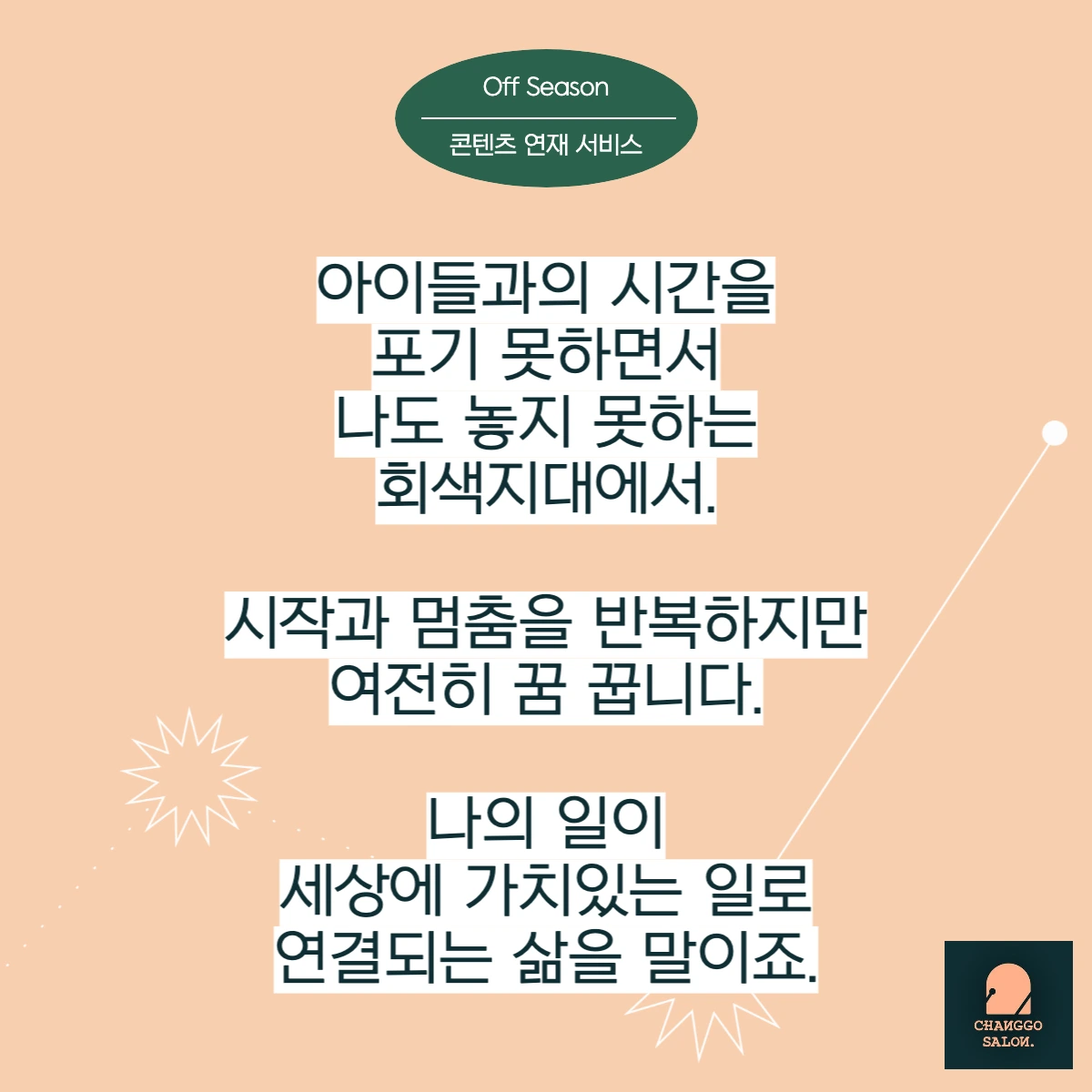시즌1부터 참여하고 있는 창고살롱 인스타그램에 작사에 도전할 사람을 찾는다는 공지가 떴다. '해보고 싶다.'는 마음이 두웅실 떠올랐다. 그런데 자신이 없었다. 그래서 댓글을 달았다. 해보고 싶은데 자신은 없다고. 안 쓰면 될 댓글을 쓴 데에는, 이유가 있다. 하고 싶은 거다. 그냥 넘어가고 싶지는 않은 것.
