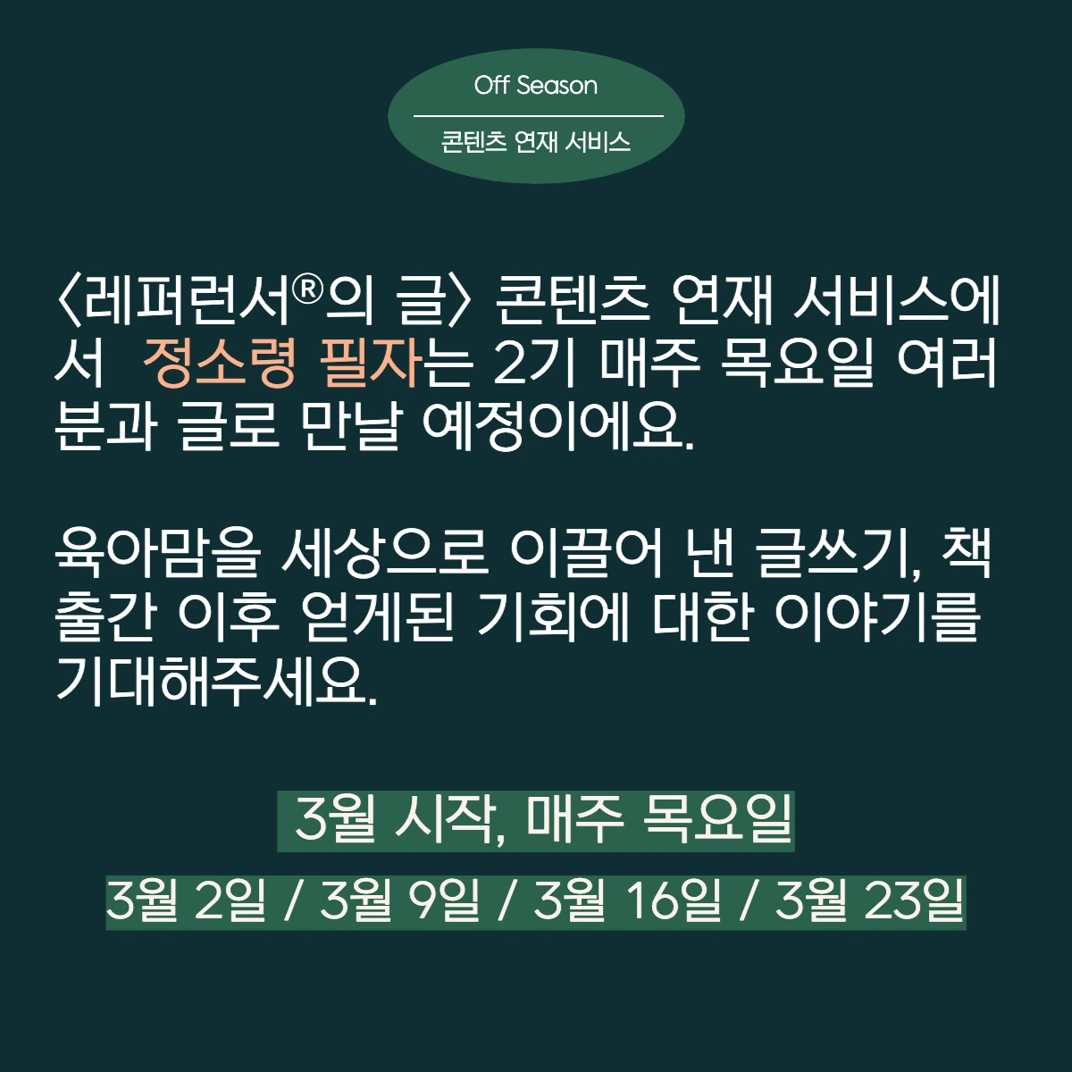 그렇게, 또 다른 형식으로 내 글을 파는 일에 도전하기로 했다. 총 열 명의 필진 중 다섯 명이 1기, 다섯 명은 2기. 나는 2기 필진이라서 3월 4주 동안 총 네 개의 글을 써낼 예정이다.