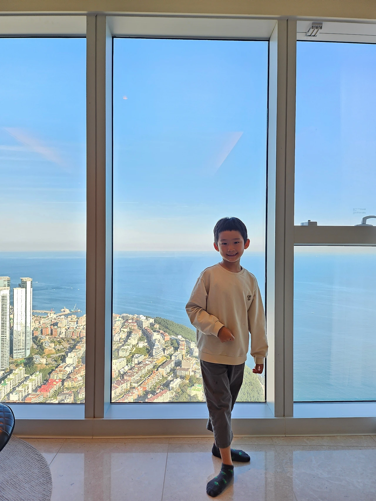 7살 아들의 부산여행 로망. 그것은 엘시티였다. 더 구체적으로 말하자면 엘시티의 초고층이었고, 90층은 그의 로망을 충족시키기에 충분했다. 들어서자마자 커튼을 열고 싱글거리며 아래를 바라본다. 거실을 살피고, 큰 방 작은 방 골고루 들락거린다. 모든 방에서 바다가 보인다고 외치며 같은 풍경을 보고 또 봤다. "봐, 어디서 보든 바다가 보이잖아. 다 바다뷰야."라고 외치는 소리를 들으며, 그의 바다뷰가 가지는 의미와 나의 바다뷰가 가지는 의미 사이의 차이를 느꼈다. 나에게 바다는 언제나 의미가 있다. 아래에서 보는 바다와 위에서 보는 바다, 10층에서 보는 바다와 90층에서 보는 바다는 조금 다르게 아름답지만 모두 그저 좋다. 그게 바다면 그걸로 충분하다. 하지만 지금 7살 아이에게 중요한 건 다른 바다가 아니라 90층이라는 초고층에서 내려다보는 바다다. 1년 넘게 꾸준히 어필해 온 그의 부산여행 로망은 이렇게 이루어졌다. 2박 3일 내내 이곳이 90층임을 강조하며 행복해하고 또 행복해했더랬다.