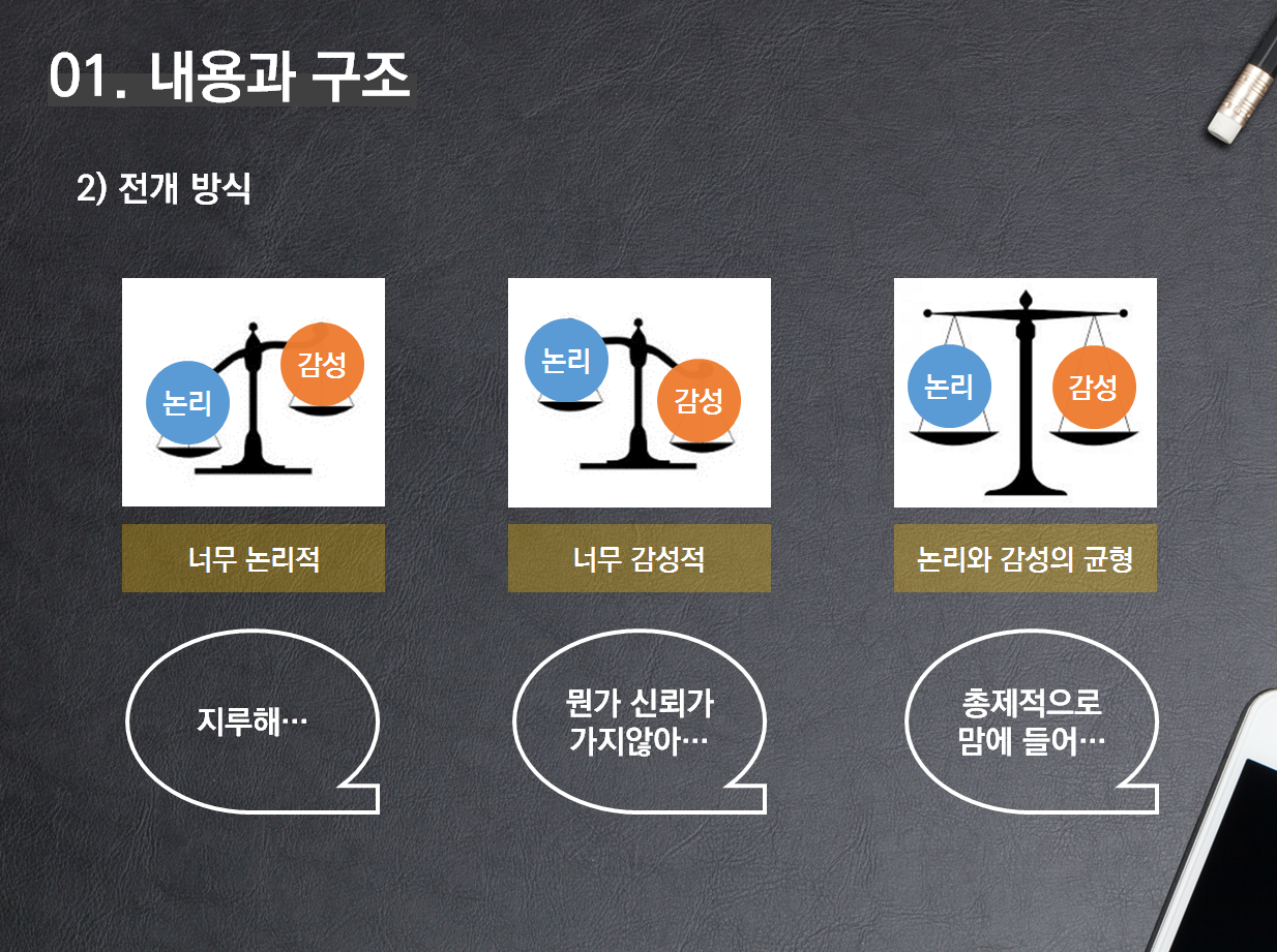 창업 심사를 하다 보면, 90% 감성으로만 호소하는 경우도 있다. 창업동기부터 구구절절 슬픈 이야기를 전개하더니, 꼭 선발해달라고 호소하는 창업자도 있다. 하지만 사업 발표에 감정에 무게가 쏠리게 되면, 정말 선발하고 싶은 마음이 사라진다. 논리적이지도 않고, 사업계획서에 데이터도 없고, 그저 뽑아 달라... 뽑아 달라... (이런 경우 정부사업에 선발된다 하더라도 성공창업으로 이어지기 힘들지 않을까?)