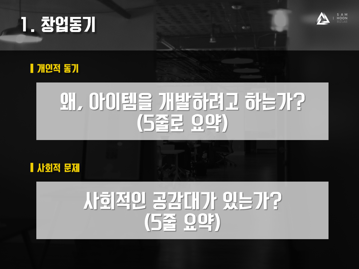 오늘은 사업계획서 목차 중, 창업동기 부분에 대해 설명드리려고 해요.