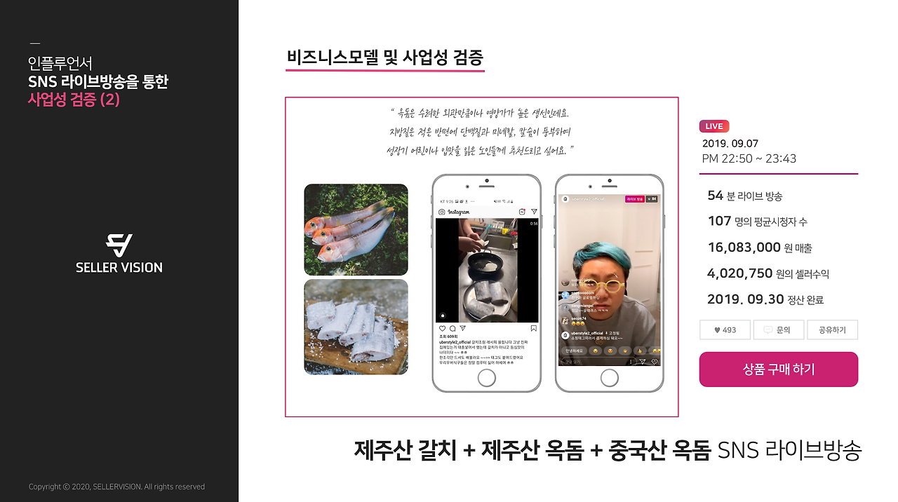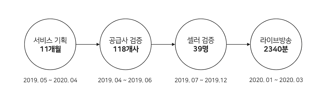 인플루언서 39명이 본인 SNS채널을 통해 라이브방송을 진행했으며, 평균 500만 원, 누적 매출 3억 원을 달성하면서 약 11개월에 걸쳐 시장검증 및 서비스 기획 본격 추진