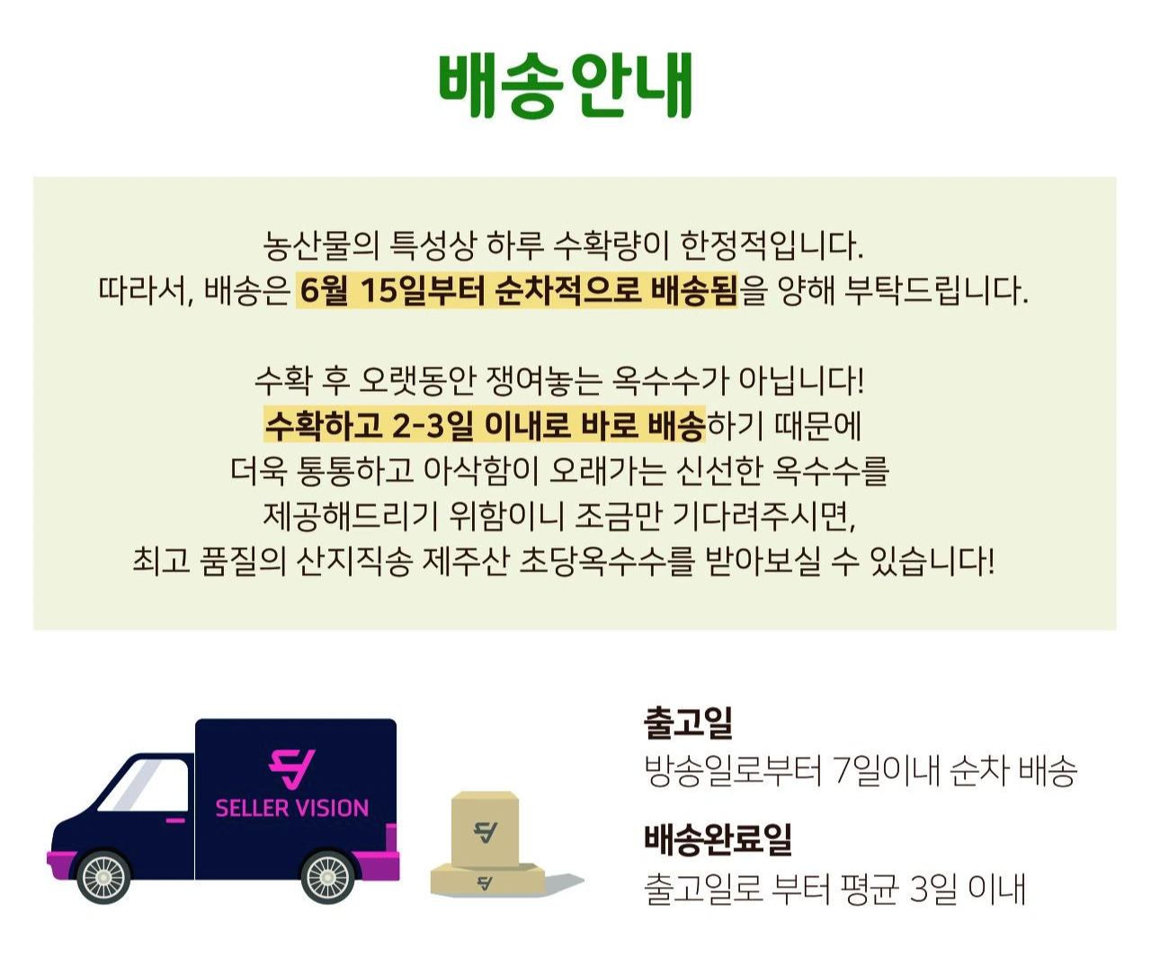 더 통통하고 아삭함이 오래가는 신선한 옥수수를 드리기 위함이니, 조금만 기다려주세요.