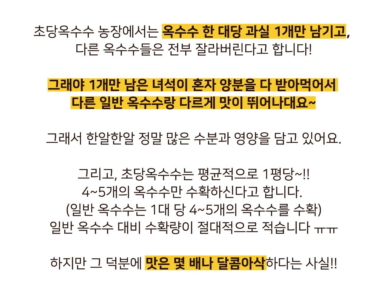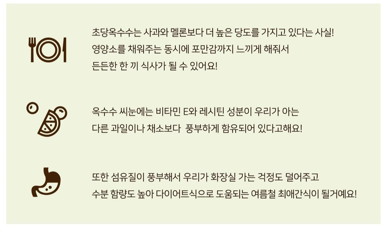 그렇기 때문에 다른 초당옥수수들보다 몇 배나 달콤 아삭하답니다~