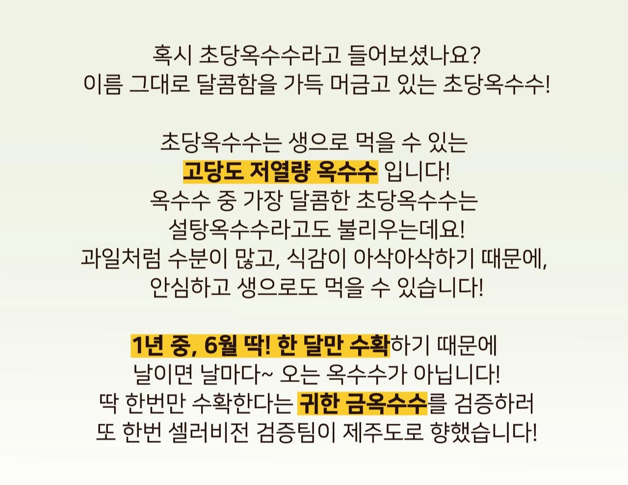 "셀러비전 팀이 검증한 돌코롬~한 제주 초당 옥수수가 곧 수확돼요!"