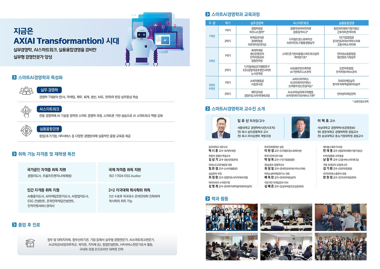 졸업 후에는 단순한 경영학사가 아니라, 'AI 기술을 접목한 스마트 경영 전문가'라는 타이틀을 얻게 되십니다.