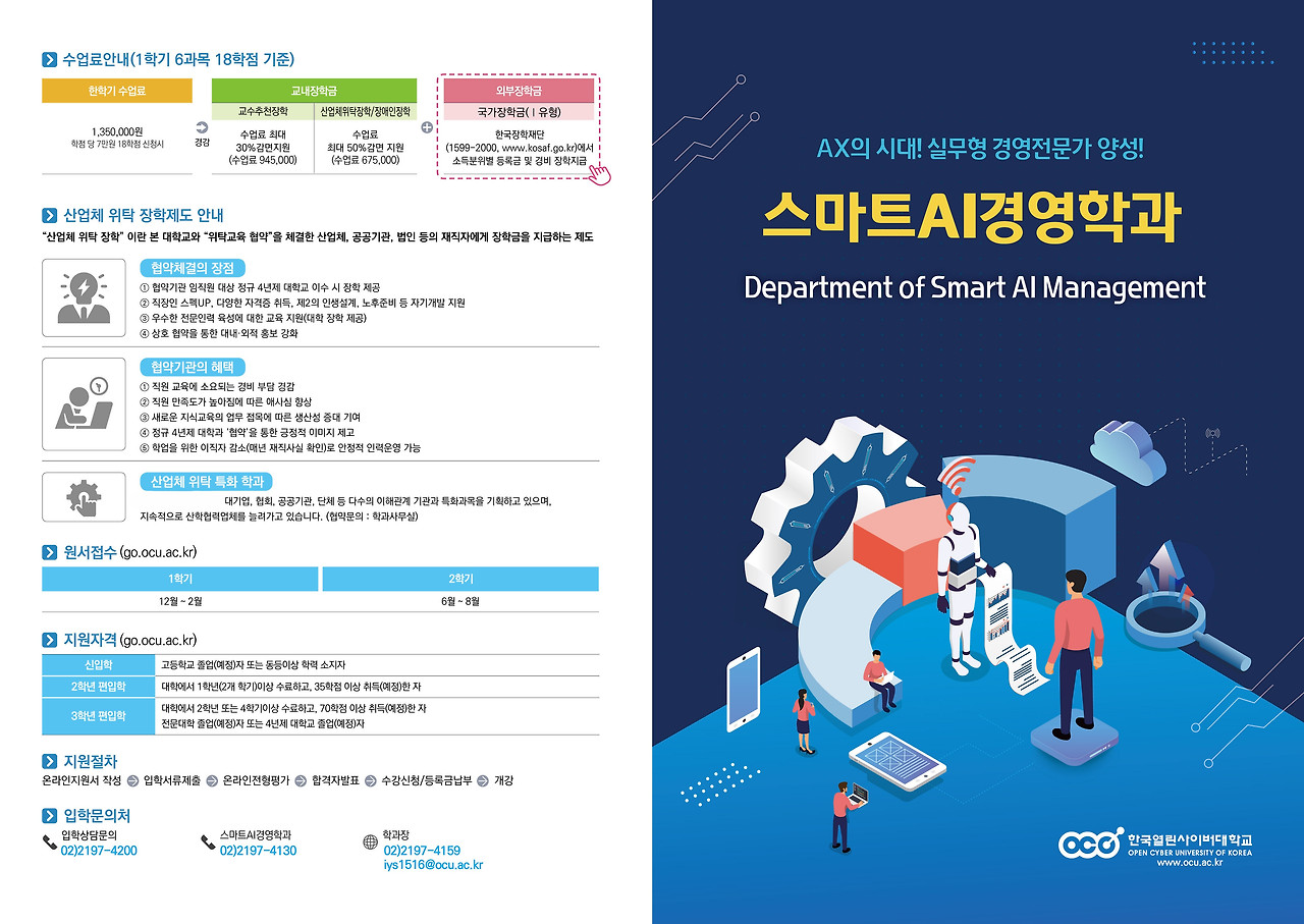저는 현재 한국열린사이버대학(OCU) 스마트AI경영학과의 산업체 주임교수를 맡고 있습니다.