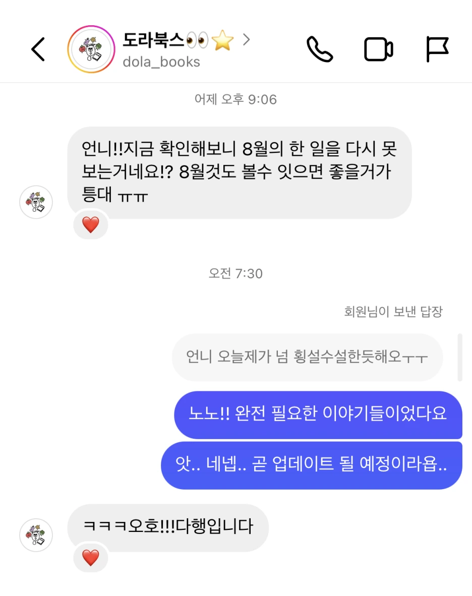 3. 마지막으로 도라 친구의 문의가 있었다.