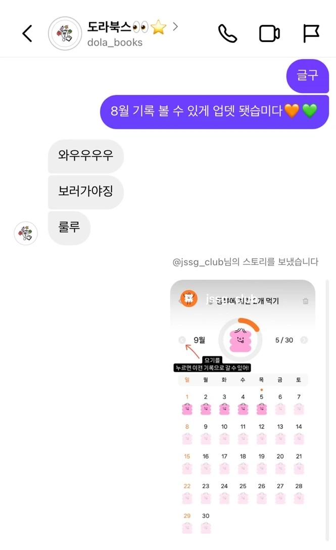 아직까진 거기까지 생각해 보지 않았지만 아무래도 칭찬 도장이 찍히는 것을 모으는 것이 큰 동력이 되기 때문에 이전 기록을 볼 수 있으면 좋겠다는 의견이 대다수였고,