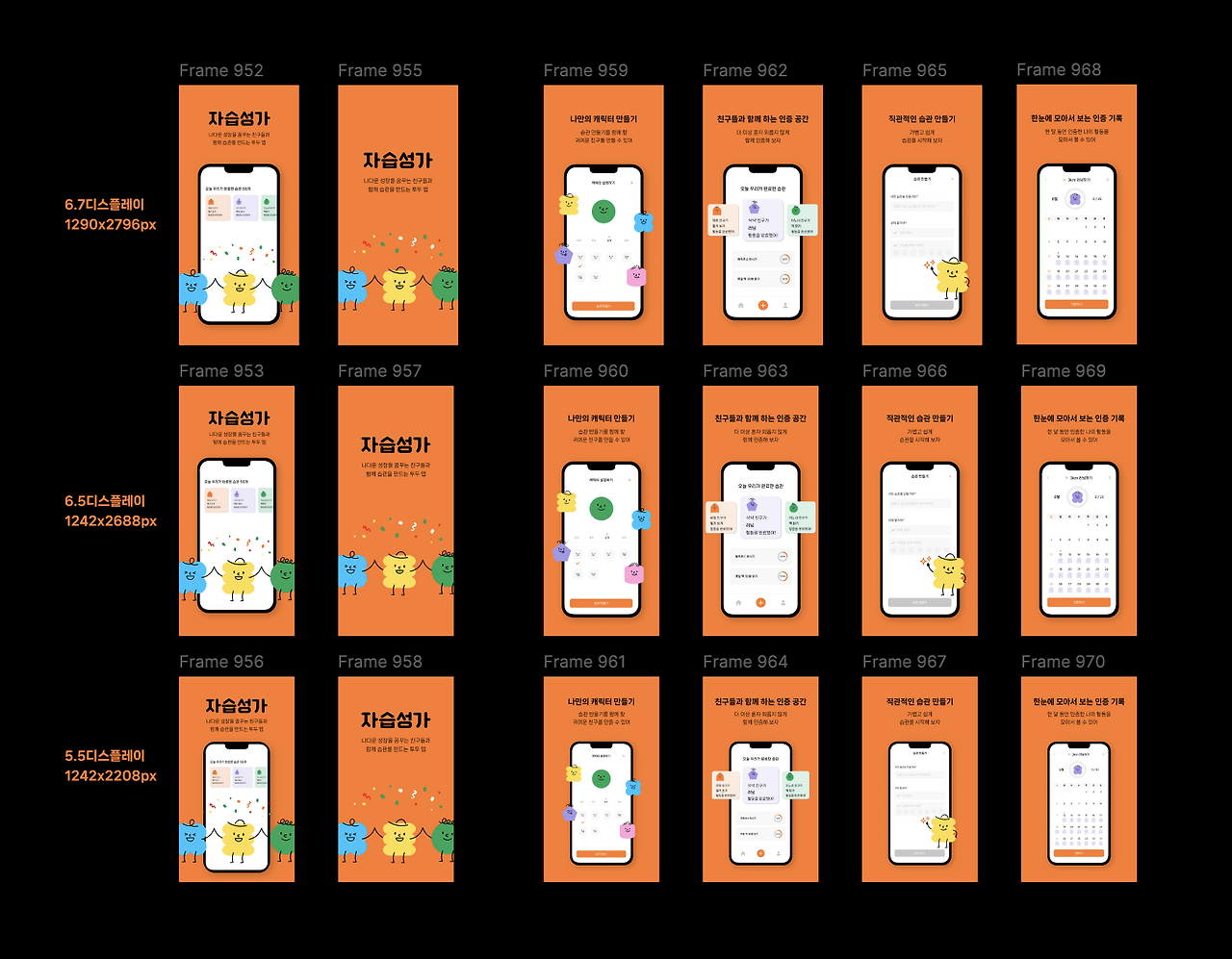 앱스토어에 미리 보기 이미지를 보여주려면 최소한 3가지의 크기의 화면이 필요하다. 심사를 넣을 땐 기본 사이즈 1개만 만들어서 심사를 하였는데, 미리 보기 화면이 적용되지 않아 찾아보니 3개의 필수 사이즈가 존재하는 것을 알게 된 것이다. 앱스토어는 유저들이 우리 서비스를 가장 처음 만나는 첫 만남과도 같은 공간이기에 중요도를 가장 최우선으로 두고 빠르게 추가 작업하여 업데이트하였다.