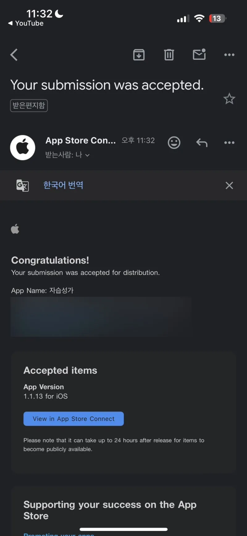 첫 배포는 아무래도 심사 과정이 길어서 최대 한 달까지도 각오를 해야 한다고 했는데, 결제 등의 개인 보안 이슈가 없어서 그랬는지 2일이 채 걸리지 않았다. 사실 갑작스럽게 배포가 진행된 것도 이 때문이었다. 시간 여유가 있을 거라고 판단해서 최대한 빨리 심사를 넣고, 홍보 자료나 마케팅 관련 준비, 미흡했던 디자인 마무리를 심사 중에 하려고 했는데 배포가 되어버린 것이다.