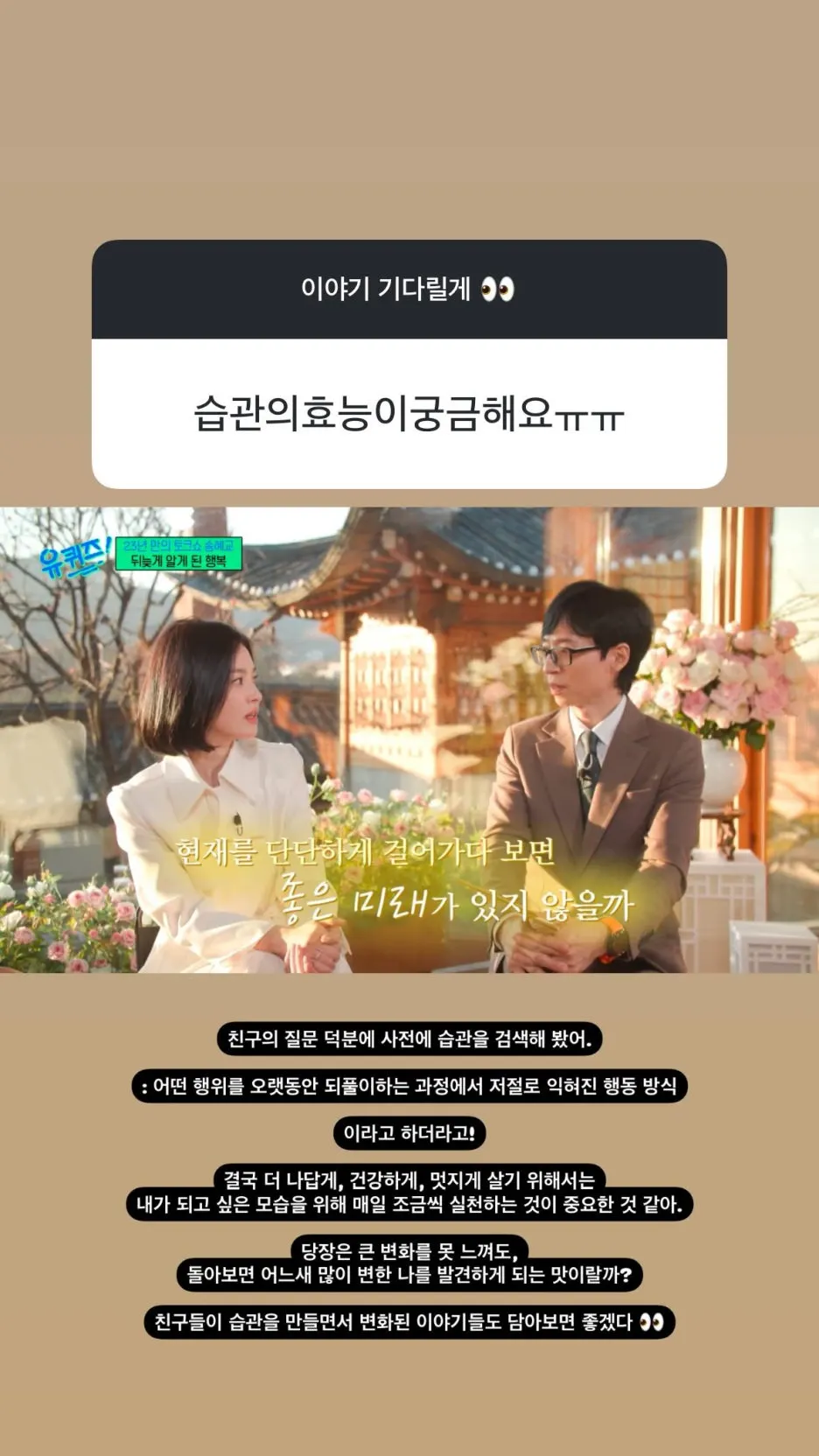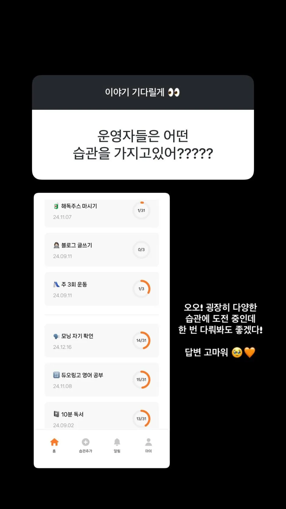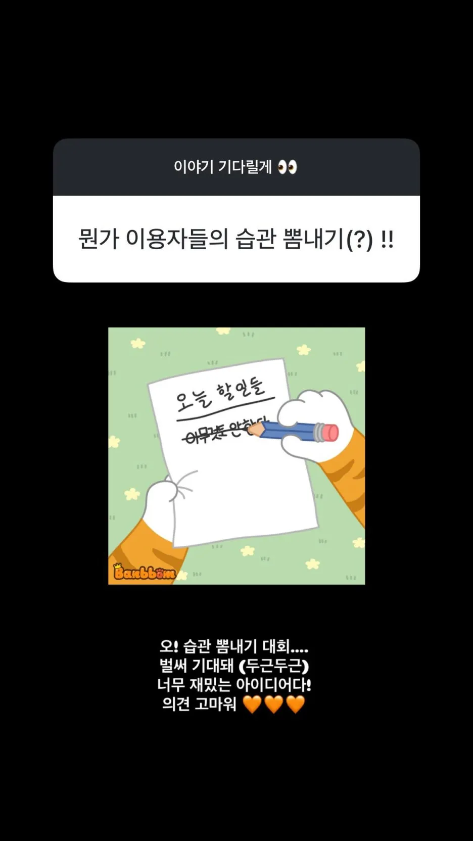 친구들아 그거 알아? 자습성가 인스타그램의 친구가 100명이 넘었어!! 자주 만나지도 못하는데 조금씩 조금씩 친구들이 생기더니 벌써 100명의 친구가 생겼지 뭐야.. 너무 고맙고, 감동적이라서 앞으로는 지금보다 더 자주 만나고 싶은 마음에 친구들에게 질문을 남겼어. 자습성가에서 어떤 이야기를 듣고 싶은지 말이야! 너무 고맙게도 많은 친구들이 의견을 전해줬어. ( 사실.. 답변이 하나도 안 오면 어쩌지? 걱정했는데.. 무플 방지 위원회 친구들아 너무 고마워 T^T)