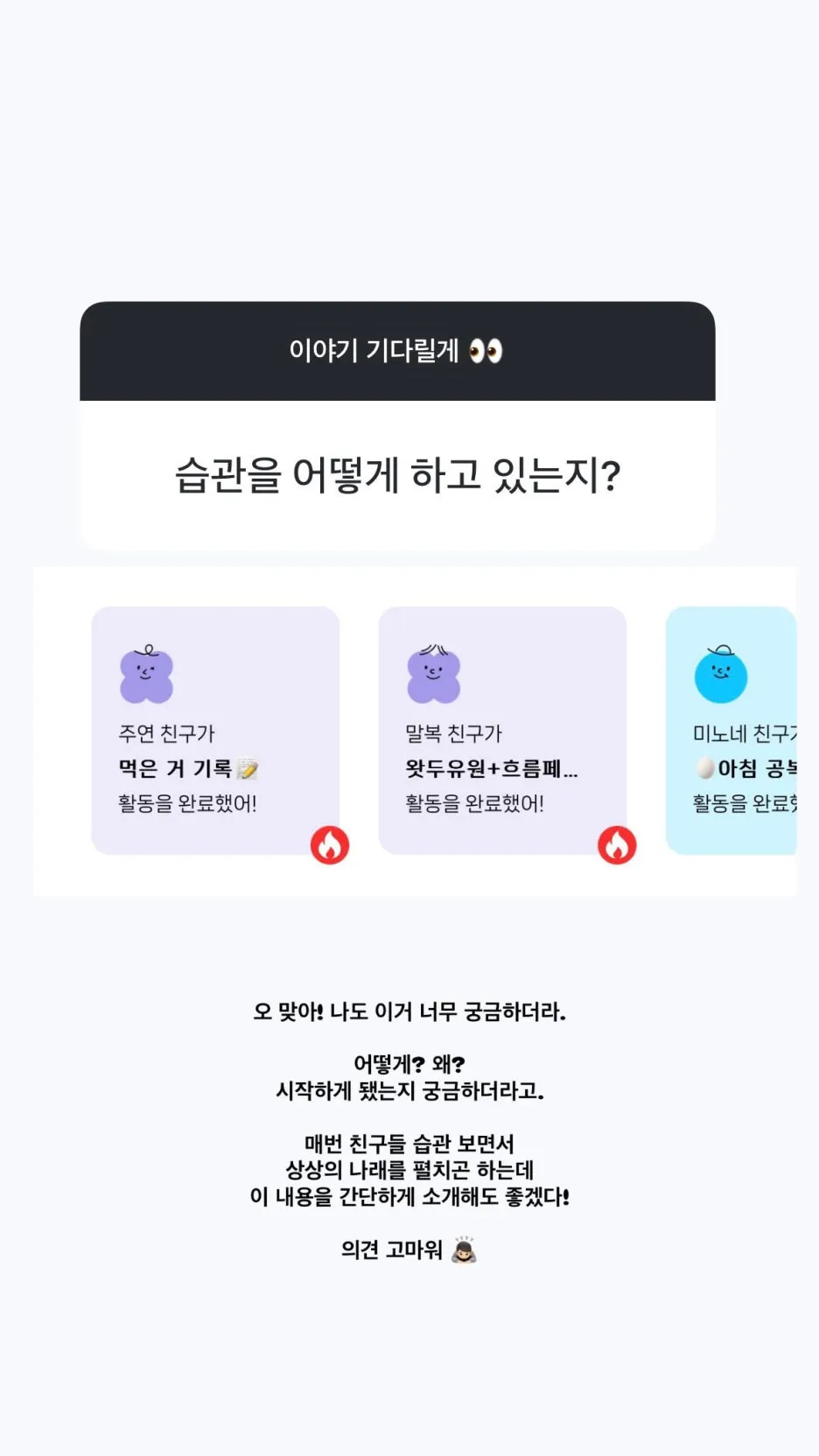 지루하고, 무겁게 느껴지는 습관이라는 키워드를 귀여운 캐릭터로 중화시켜주자