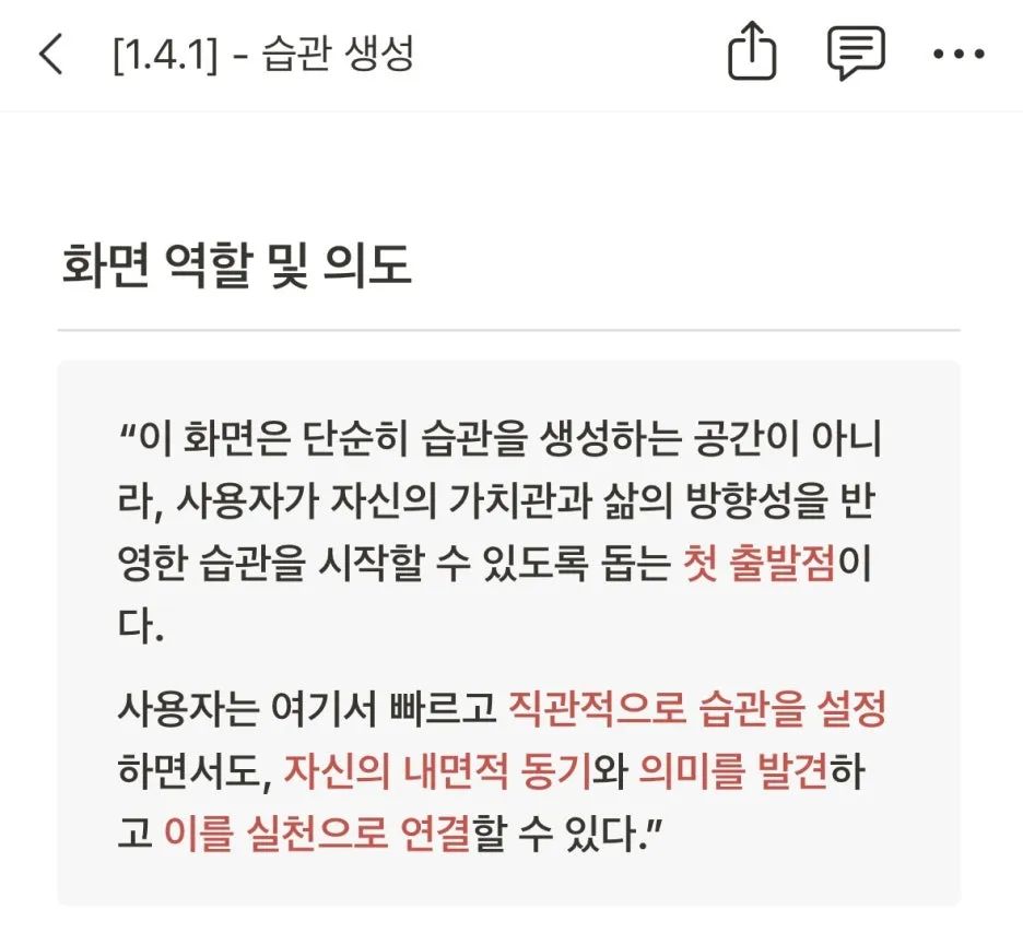 단순한 화면의 의도를 넘어서 우리 팀이 왜 습관을 만들 수 있도록 도와야 하는지 그 이유까지 정리가 되는 내용이었어. 덕분에 더욱 열심히 만들어 봐야겠다는 힘이 생겼지.