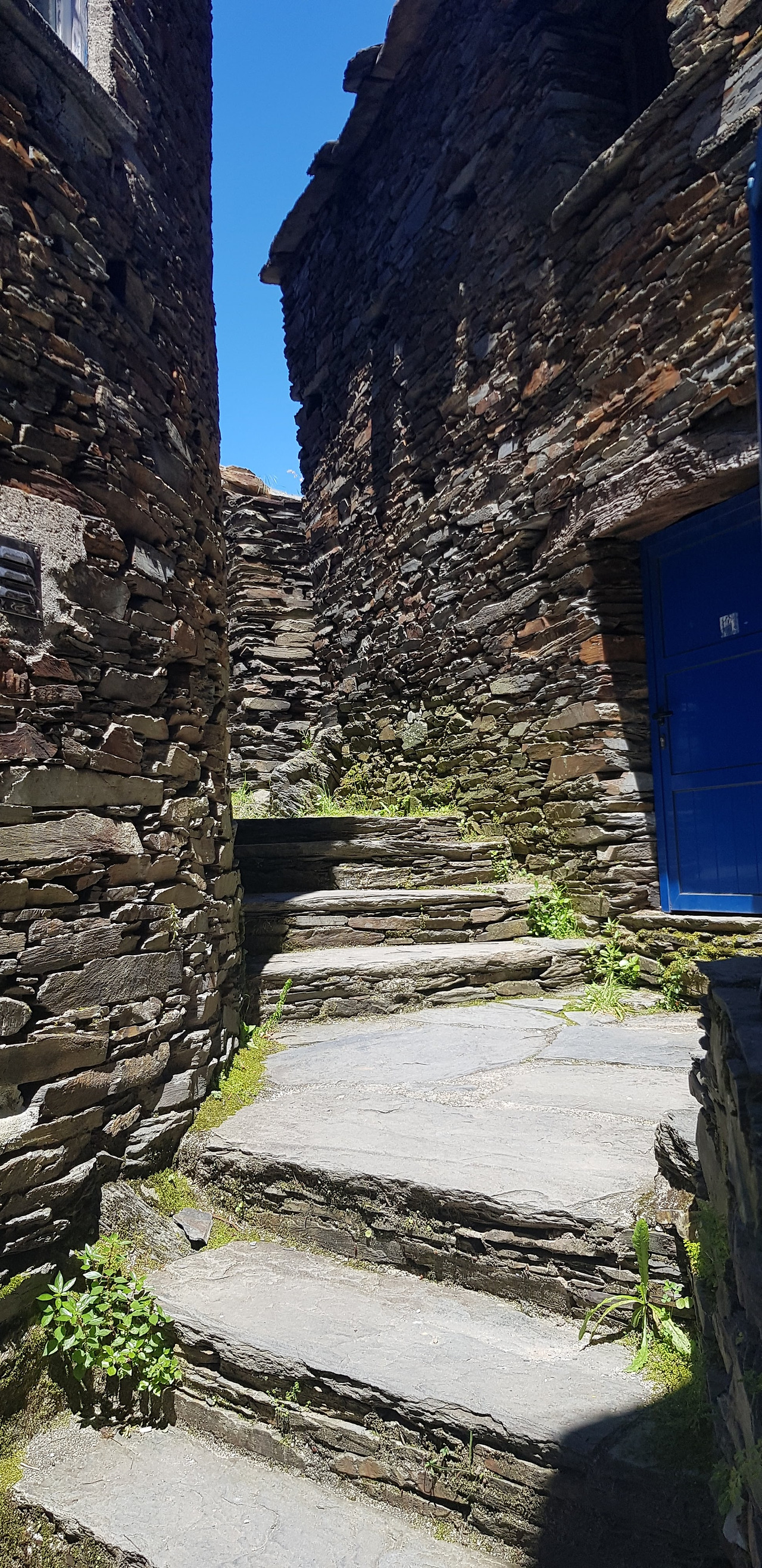 마을 초입에는 18세기에 지어졌다는 교회가 우뚝 서 있다. 다소 어두운 톤의 집들과 달리 먼 대서양을 생각나게 하는 하얗고 푸른색의 교회다. 언젠가 백설공주 동화 속에서 본 것만 같은 그런 교회. 왠지 기분이 좋아지는데 그도 그럴 게 이 교회는 여행자로 하여금 이제 당신이 동화 속 마을에 들어섰다는 느낌을 물씬 느끼게 하기 때문이다. 우리는 교회를 시작으로 조용히 마을을 거닐기 시작한다. 집의 벽은 주위에서 흔히 볼 수 있는 편암을 쌓아 만들었고, 지붕은 예의 포르투갈 어디서나 볼 수 있는 지중해식 붉은 기와 대신 크고 넓적한 점판암을 겹쳐 만들었다. 산에서 내려오는 개울물이 마을의 집들을 휘돌아 줄기차게 내려온다. 인기척이 드문 마을에 그 물소리만 너무 청명해서 가슴이 뻥 뚫리는 기분이 든다. 자세히 보니 집마다 문에는 십자가가 걸려있다. 지나가는 마을 촌부에게 물으니, 어깨를 으쓱거리며 악령을 쫓기 위해서라고 말한다. 악령이라는 소리에 나도 어깨를 으쓱거린다.