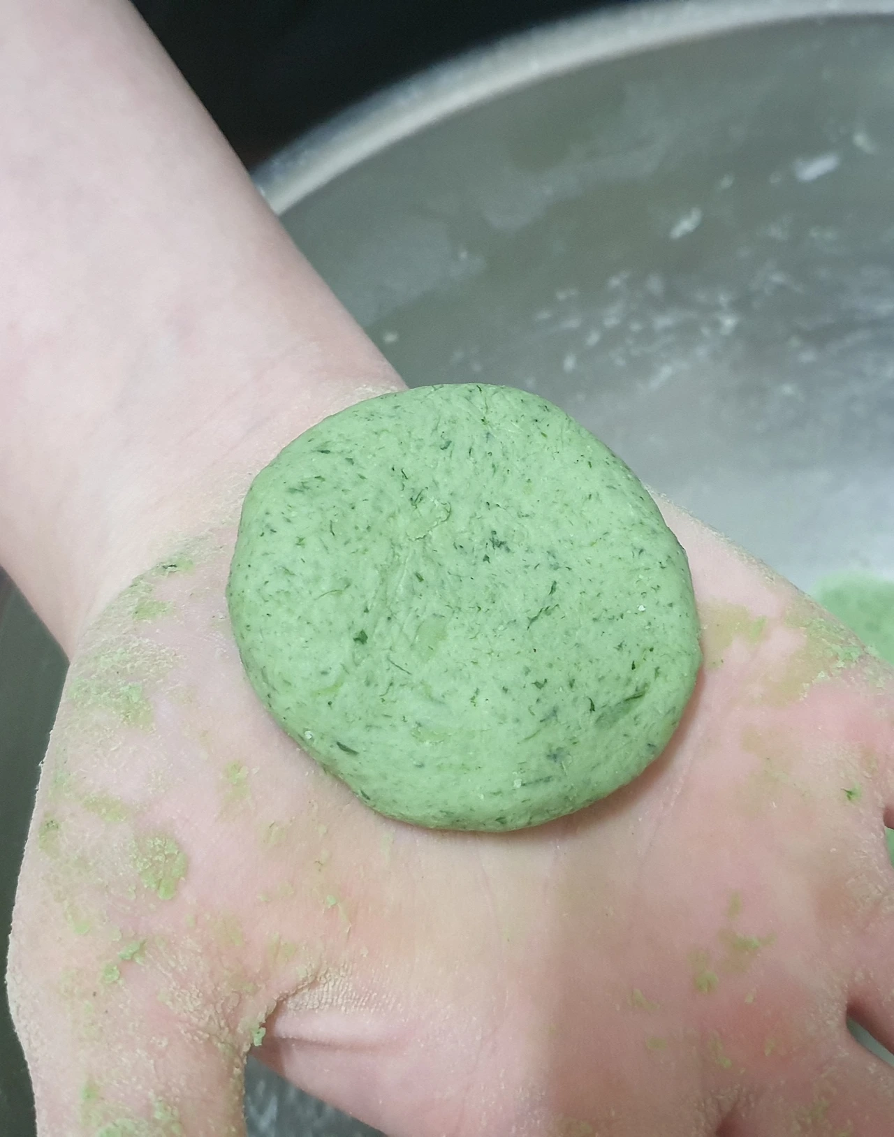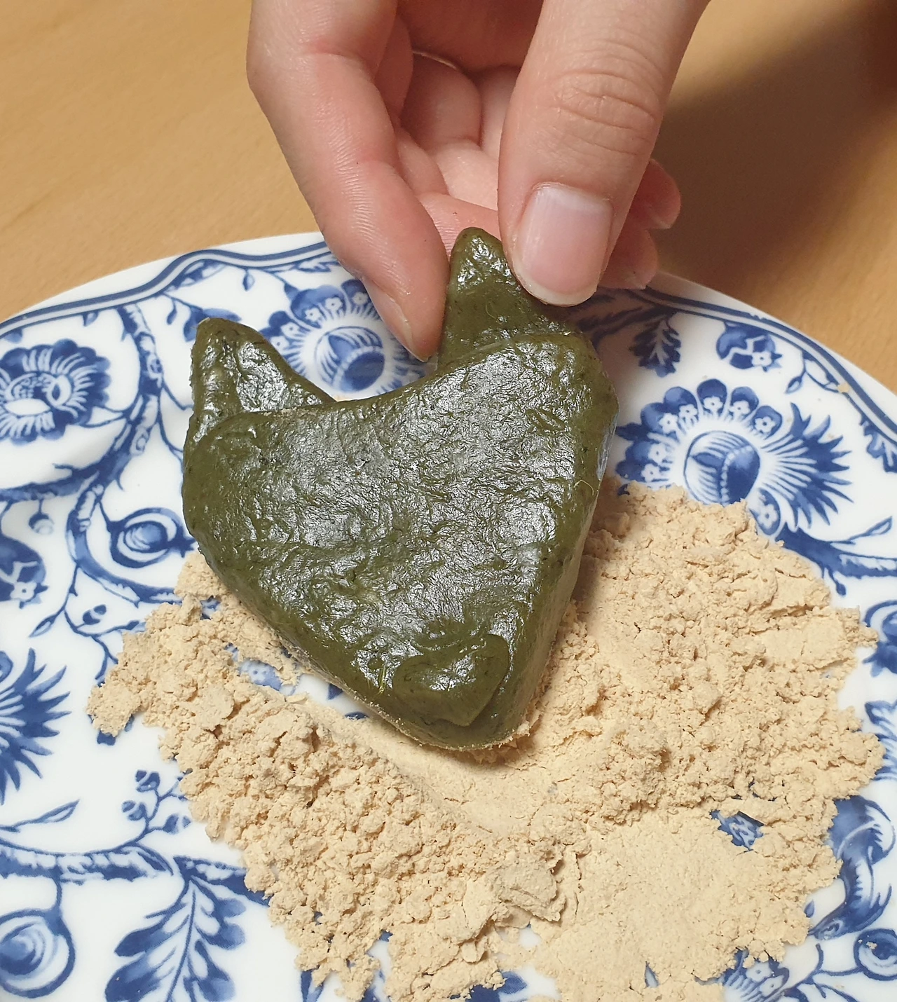 쑥과 멥쌀을 섞어놓은 쌀가루에 뜨거운 물로 익반죽을 한다.