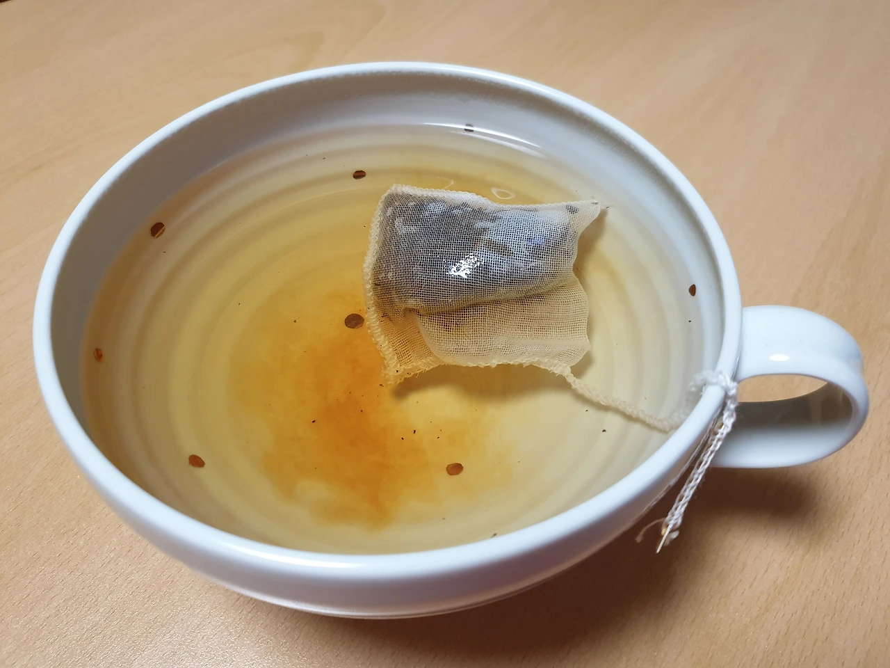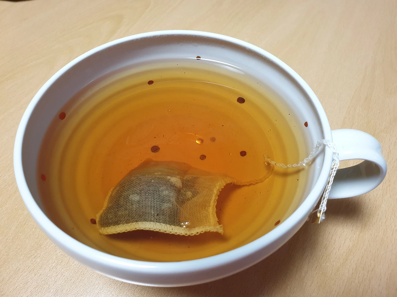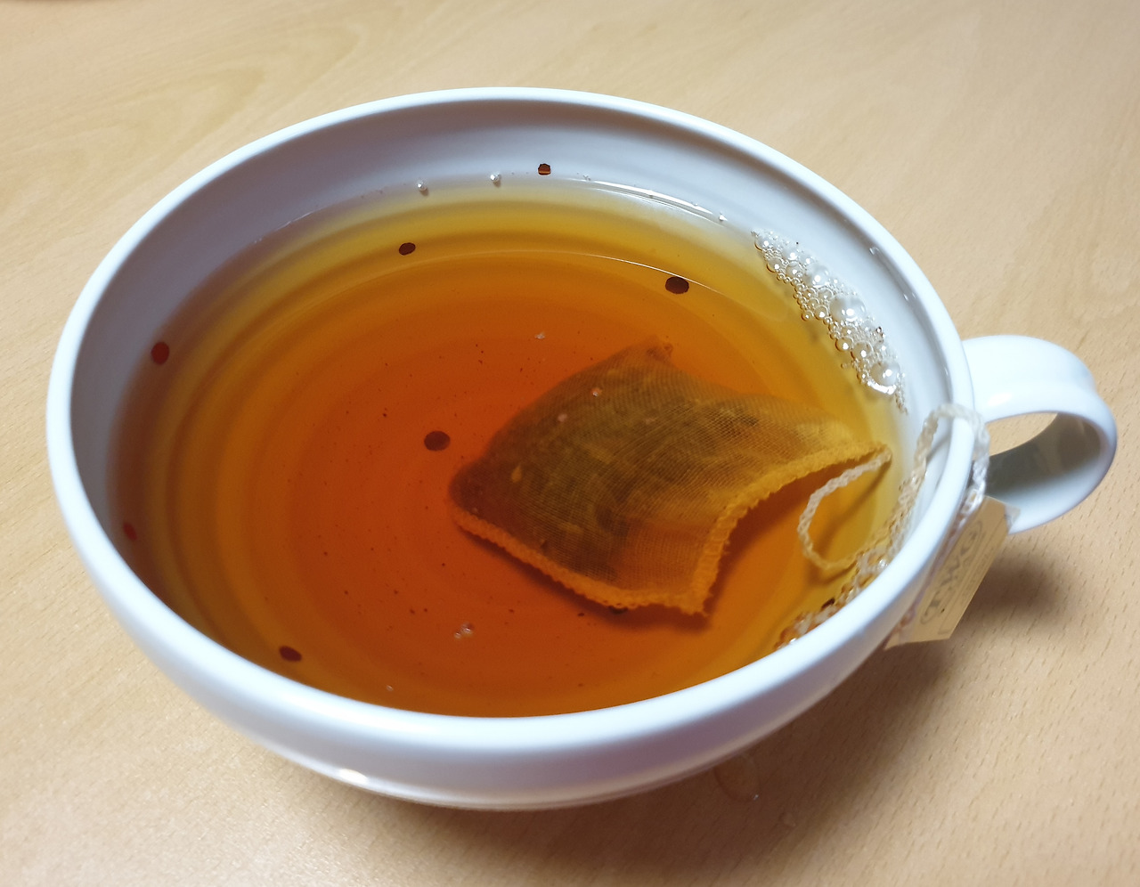 찻물에 잠긴 땡땡이가 나를 보고 있다