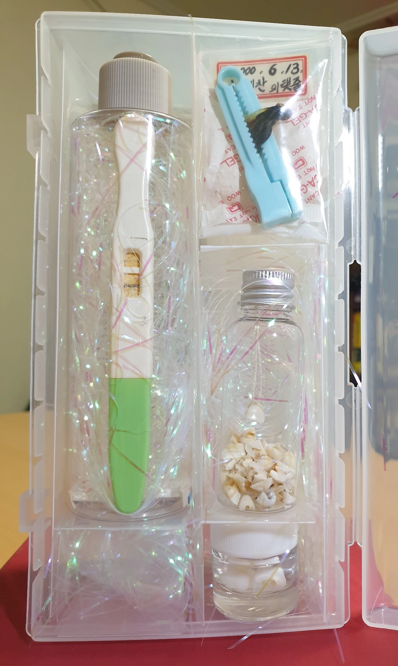빠진 이의 개수만큼 재미진 추억.(처음 요란하게 치과에 가서 이를 빼고는 그 후로는 모두 엄마가 뽑아 주었지. 실로 묶어 쏙~. 오빠까지 뽑아줬으니 난 이빨 뽑기 선수^^ 오래되어 말라 깨진 이빨들을 퍼즐 맞추기처럼 맞춰보면 몇 개나 될랑가ㅎ)