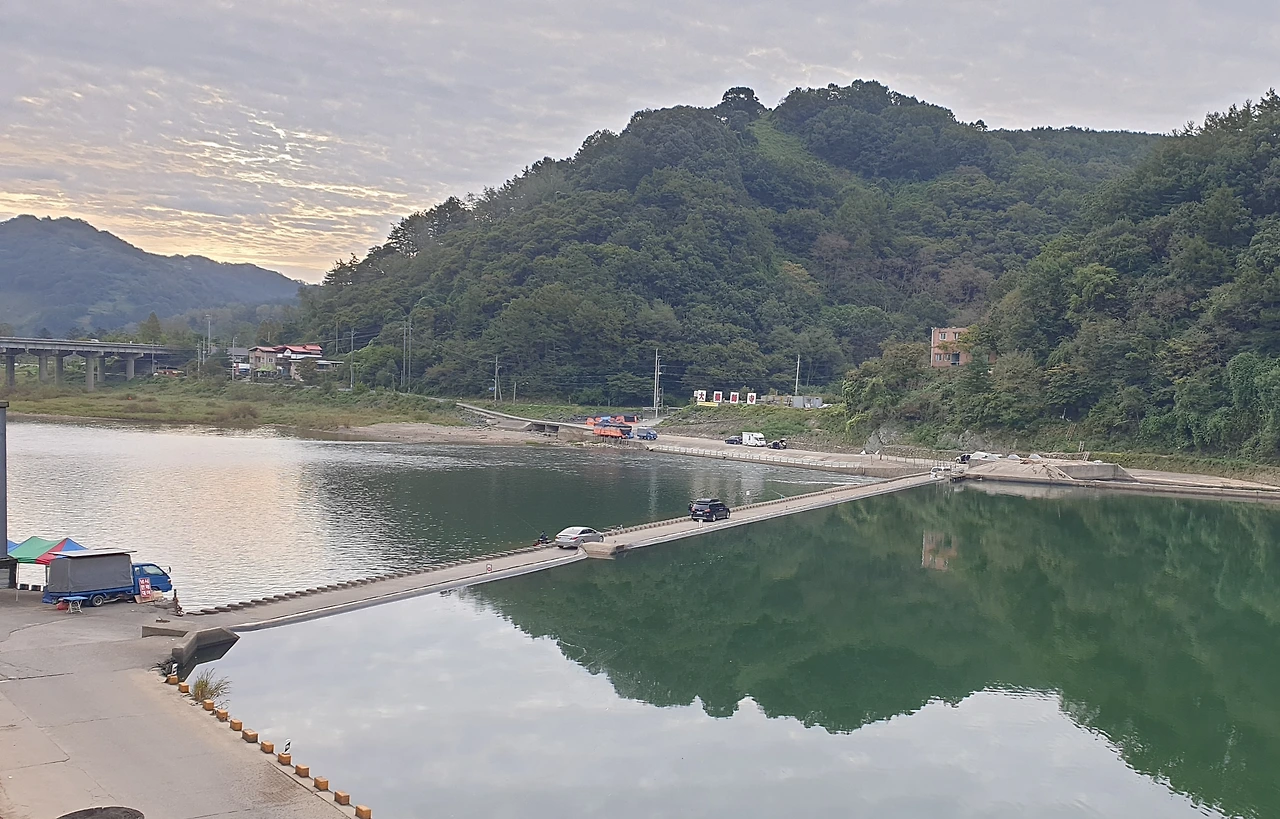 왼쪽으로 멀리 보이는 물가 그 자리