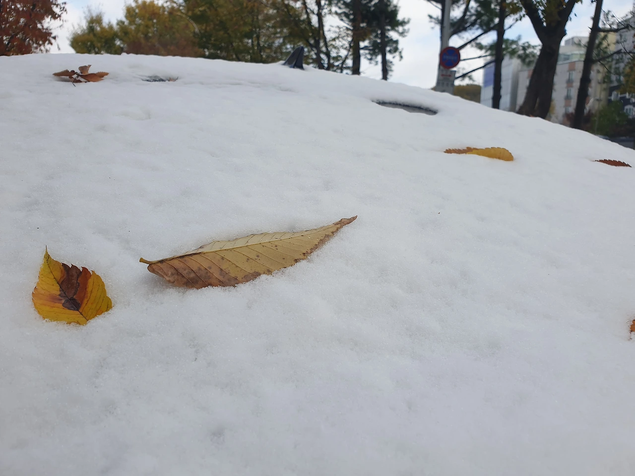 밤사이 첫눈이 내렸다
