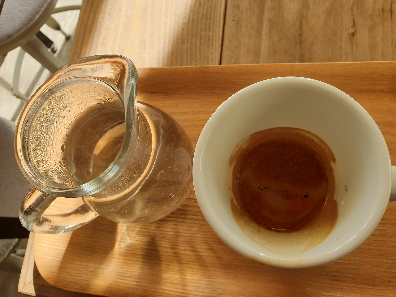 아메리카노를 시키면, 잔에 에스프레소와 뜨거운 물이 따로 나온다.