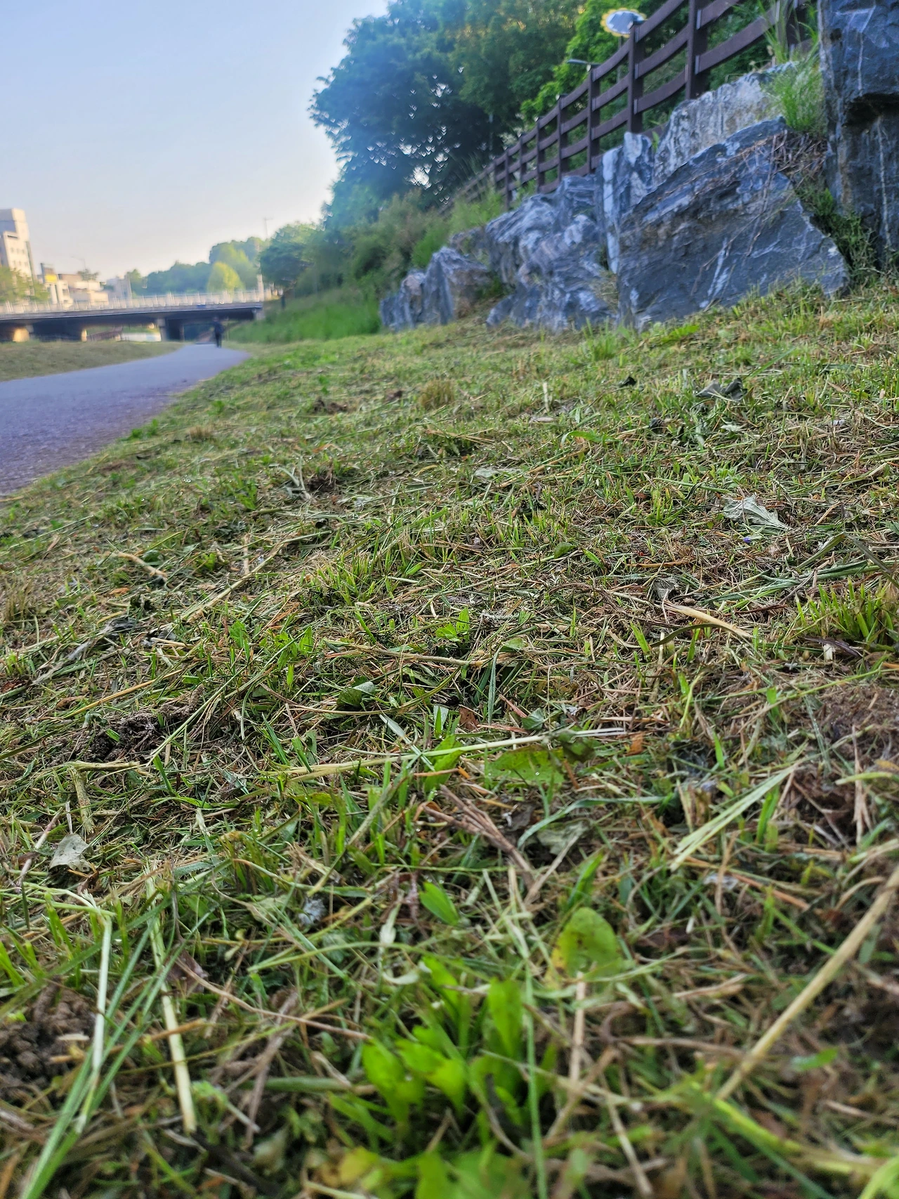 천변정비로 길 좌우로 풀베기 작업을 했는지 짙은 풀냄새가 난다.