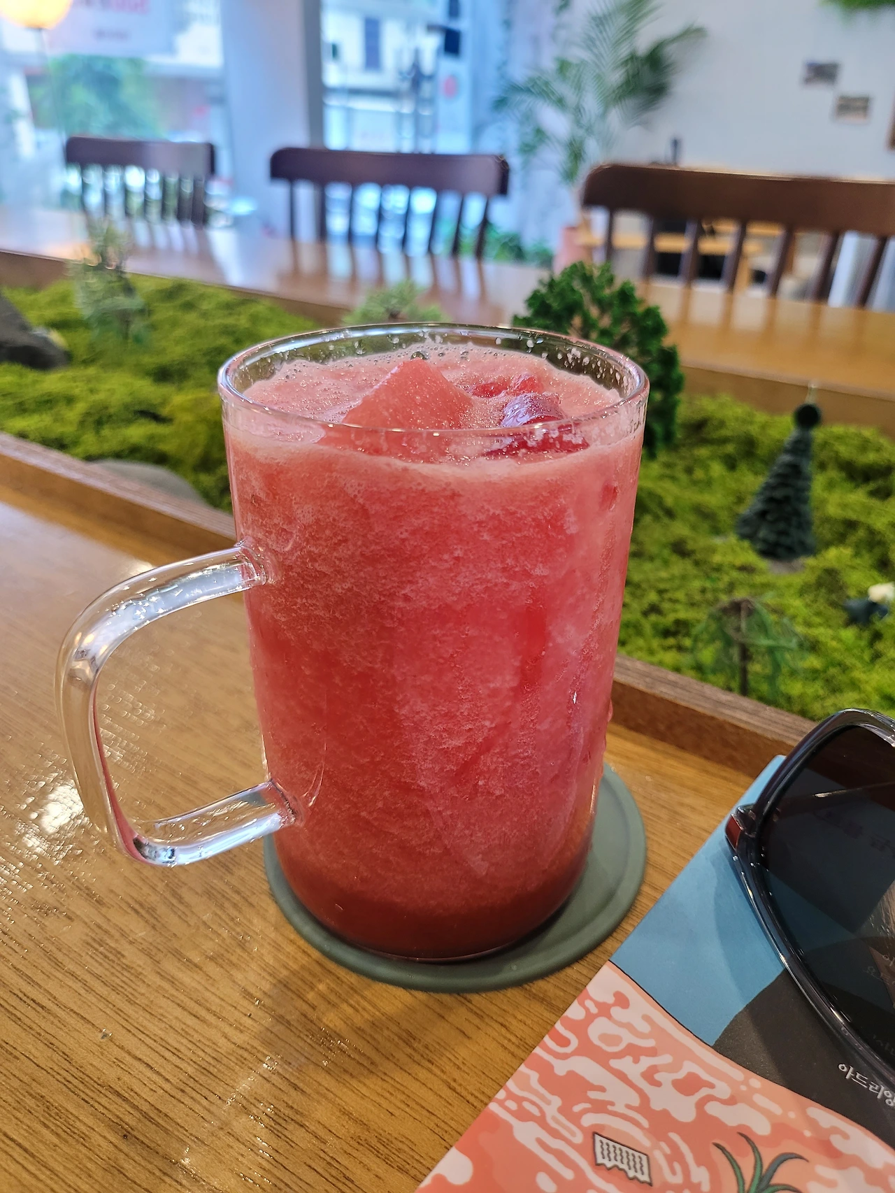 달큰한 수박주스로 마음의 불씨를 식혀본다.