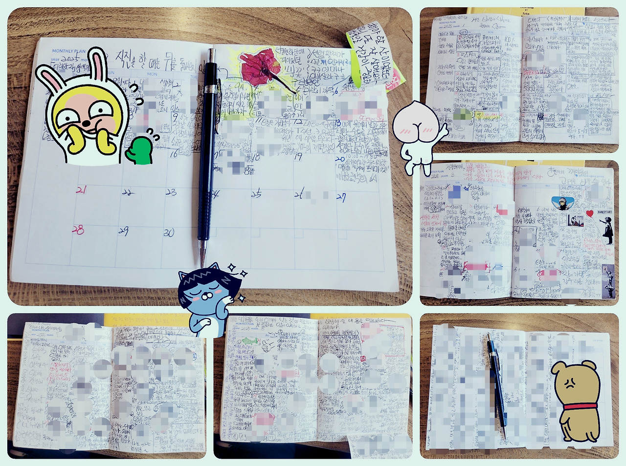 찌뿌둥한 몸을 책상에 걸터앉아 작은 다이어리 칸에 짧은 일기를 쓴다.