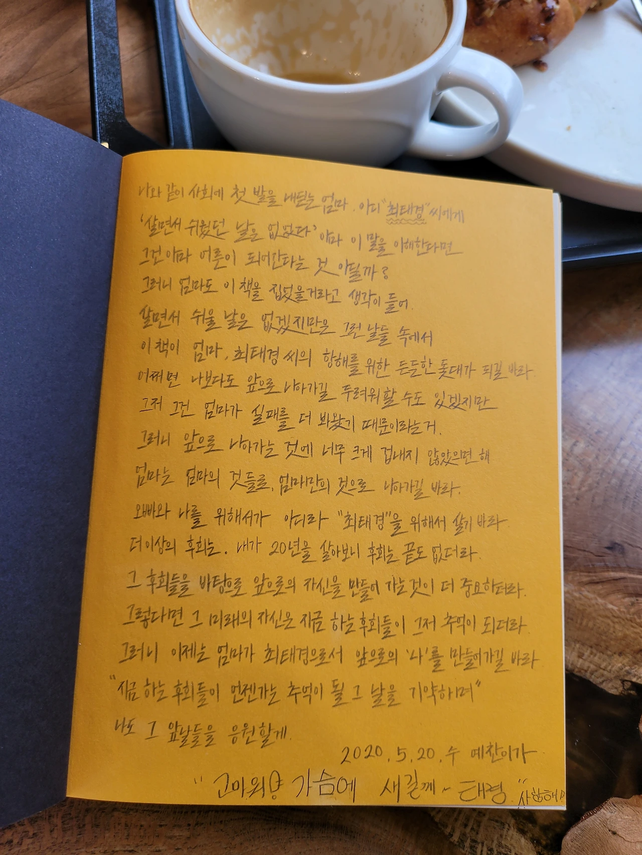 2020년 5월 20일, 딸아이가 서점에서 사주며 책머리에 남긴 글귀가 있다.